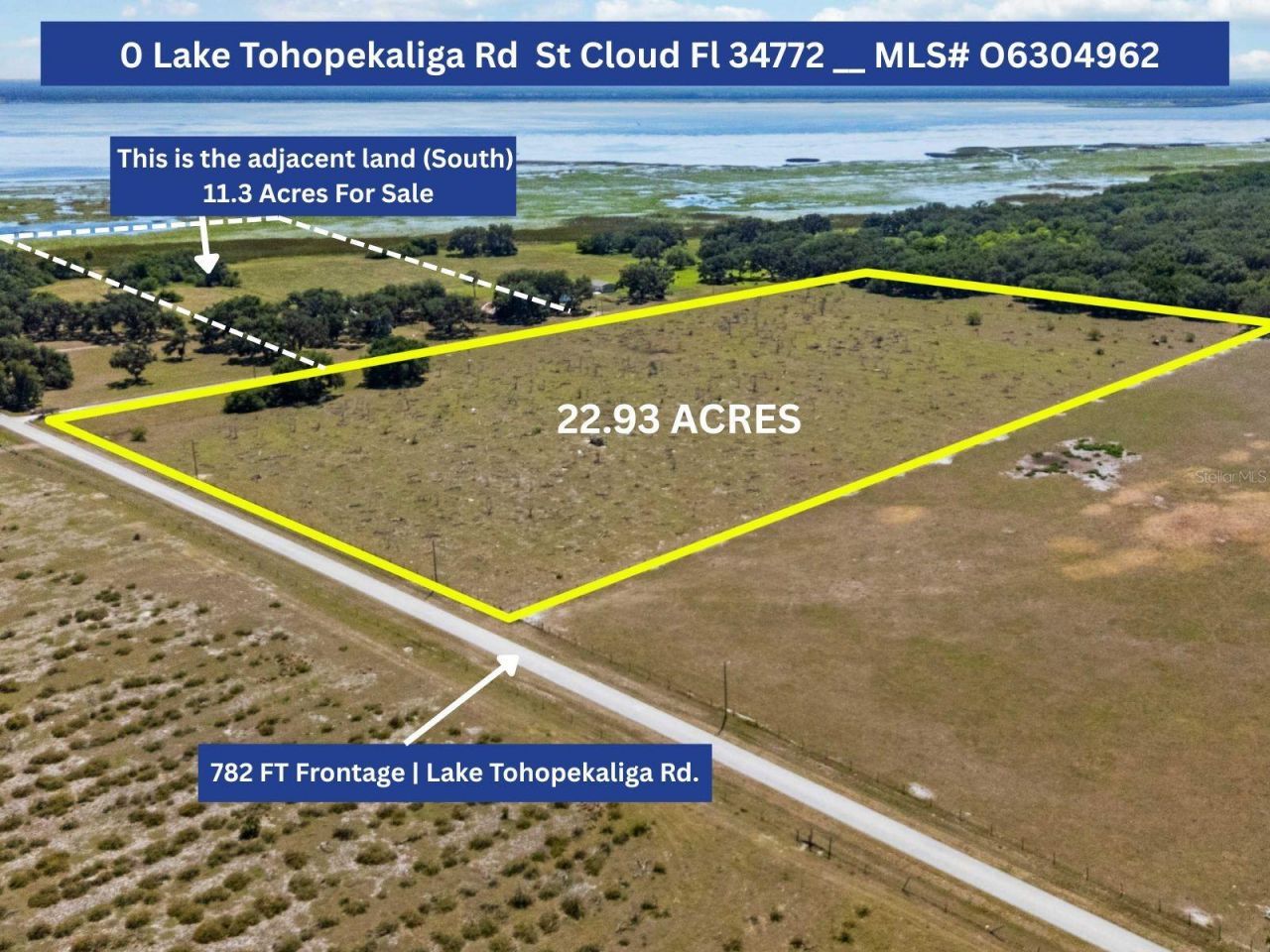 Right at 23 Acres (22.93 Acres) of Prime Land - in one of the Fastest Growing Areas of Central Florida! This land is currently being used as Agricultural, but the Zoning has already been changed to Mixed Use, opening up so many possibilities. You might be interested in creating a phenomenal homestead, or perhaps you have grander plans in mind. Either way, this lot offers many potential uses. And if you enjoy fishing, less than 1000 feet away, at the end of the road, there is a Public Boat Ramp, ...Right at 23 Acres (22.93 Acres) of Prime Land - in one of the Fastest Growing Areas of Central Florida! This land is currently being used as Agricultural, but the Zoning has already been changed to Mixed Use, opening up so many possibilities. You might be interested in creating a phenomenal homestead, or perhaps you have grander plans in mind. Either way, this lot offers many potential uses. And if you enjoy fishing, less than 1000 feet away, at the end of the road, there is a Public Boat Ramp, putting in onto Lake Tohopekaliga - the Largest Lake in Osceola County, and one of the largest lakes in Florida, covering ~ 20,000 Acres, making Big Lake Tohopekaliga the largest lake in Osceola County and one of the largest lakes in Florida! It boasts some of the best bass fishing in the country - in fact hosting the BassMasters' tournament and consistently producing record breaking catches. This Land is a Fantastic Investment Opportunity: Situated in the Path of Progress, Convenient to Beaches, Orlando, Attractions, and OIA!