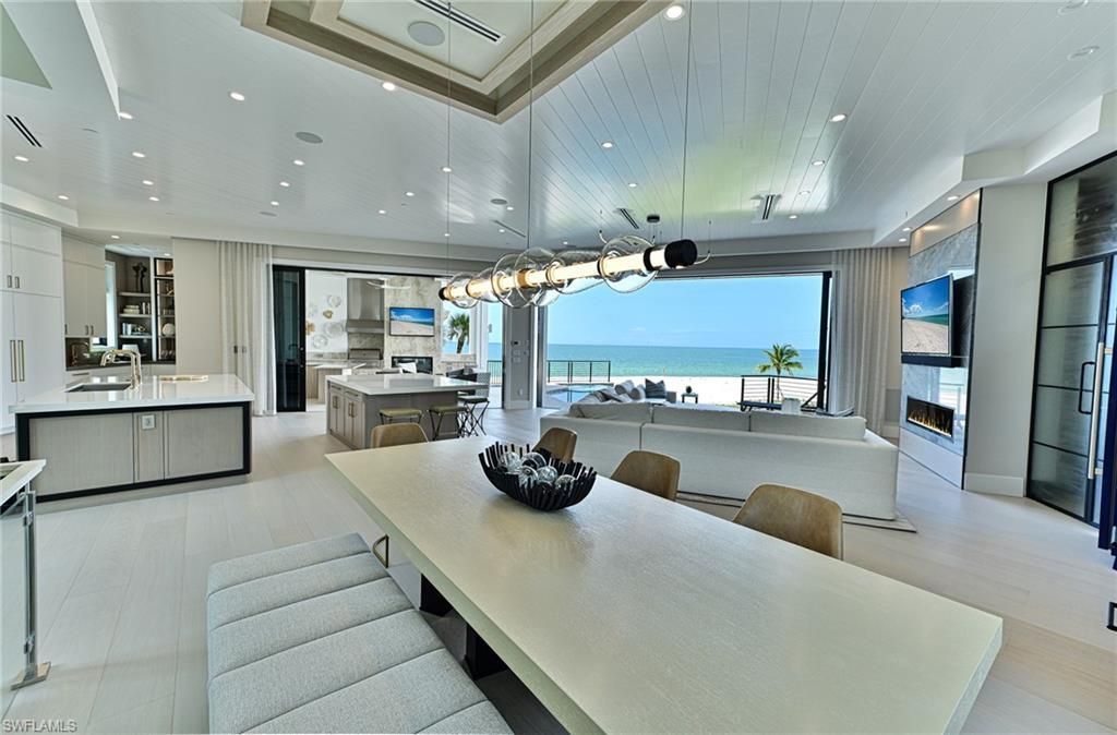This 4 Story 6/7 Bedroom 9 bath just completed Barefoot Beach home with over 10,000 Sq Ft total living area and over 6,000+ AC area took 3 years to complete the teardown, design, permitting, construction and furnishings - but the wait has been worth it! No expense was spared to create this amazing coastal contemporary beach home that features the latest in exterior and interior design and technology. The minute you reach the top stair to the main living level all you see through this amazing hom...This 4 Story 6/7 Bedroom 9 bath just completed Barefoot Beach home with over 10,000 Sq Ft total living area and over 6,000+ AC area took 3 years to complete the teardown, design, permitting, construction and furnishings - but the wait has been worth it! No expense was spared to create this amazing coastal contemporary beach home that features the latest in exterior and interior design and technology. The minute you reach the top stair to the main living level all you see through this amazing home is the white sand and turquoise water of the Gulf. The open floor plan provides those wide views from the dining area, kitchen, great room, bar which all open to the huge covered lanai, and sun deck around the elevated swimming pool & spa with a negative edge over the beach. The 12’ ceilings with incredible details, 10’ sliders, transom & picture windows bring in massive amount of light to enhance the views and living experience. The coastal contemporary interior design throughout the home showcases the latest & highest quality finishes and furnishings available. The control 4 smart home, complete audio visual with latest in smart tv technology and state of the art security system with cameras, whole house generator plus elevator to all levels assure the best in living. Every room has custom ceiling and/or wall designs including beams, tongue & groove, ship lap with millwork with cabinet quality. The floating staircase to all 4 levels features wide wood treads and glass railings. The chef’s kitchen includes Wolf gas range, Subzero refrigerator/freezer, oversized sink with two faucets, custom cabinetry, two large islands with seating for 8 providing the best in cooking, entertaining or large catered gatherings. The great room & dining features a large bar area with full size “True” beverage refrigerator & glass wine room. The large covered lanai features electric screens & shutters, a large sit at bar with sink, refrigerator summer kitchen with gas grill & hood, a pool bath, beach/pool laundry and a gas fire place with big screen tv above - all with out of this world gulf views over the pool. The Owner’s bedroom suite and deck sit right over the pool & beach. The bath has wall of his and her vanity & linen cabinets, oversized shower with his & her fixtures, rain head and relaxation bench. The free standing tub sits right at large picture windows overlooking the gulf. The very custom closet will handle all your clothes. The cloud room/den/flex room has large deck big screen tv and bath. The five large guest rooms are all finished and furnished to the same level as the rest of the home and the guest baths could be master baths in most homes. The exterior design offers outstanding street appeal including the 3 custom glass garage doors and solid wood 10’ entrance door. Barefoot Beach gated community amenities: 24 hour guards & patrols, Clubhouse with fitness, tennis, pickleball, on site Manager & beach garden pool, spa & firepit. Boat Dock Available.