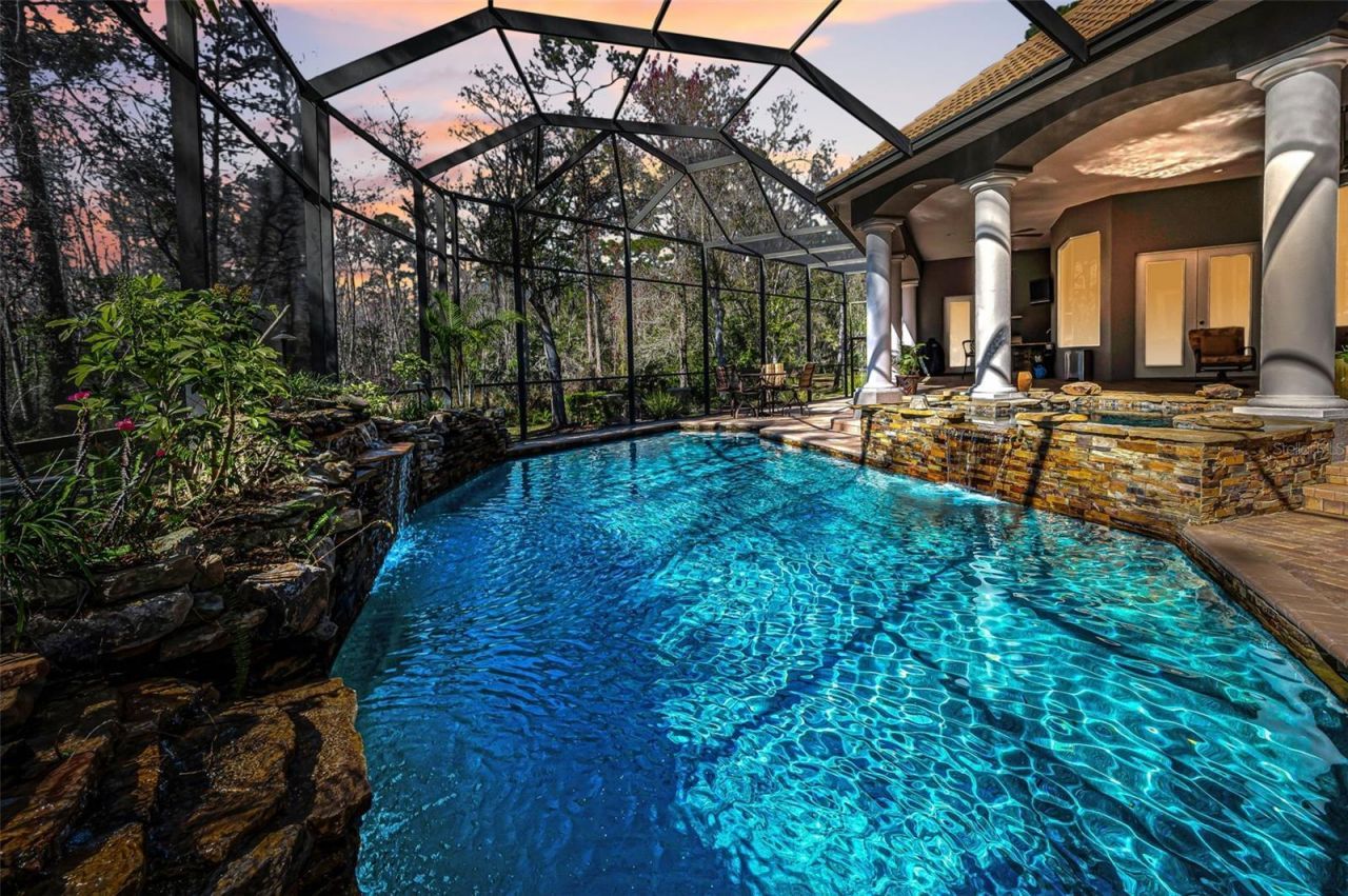 Welcome to this exceptional 5-bedroom, 4-bath luxury estate in the highly desirable Aristida community, offering over 4,300 square feet of living space on a private 2.73-acre conservation lot. Nestled at the end of a quiet cul-de-sac, this custom home delivers the perfect blend of privacy, nature views, and convenience just minutes from top-rated schools, shopping, dining, medical facilities, and Starkey Market in the Trinity/Odessa area.Impressive curb appeal begins with dual brick paver drivew...Welcome to this exceptional 5-bedroom, 4-bath luxury estate in the highly desirable Aristida community, offering over 4,300 square feet of living space on a private 2.73-acre conservation lot. Nestled at the end of a quiet cul-de-sac, this custom home delivers the perfect blend of privacy, nature views, and convenience just minutes from top-rated schools, shopping, dining, medical facilities, and Starkey Market in the Trinity/Odessa area.Impressive curb appeal begins with dual brick paver driveways, a grand double-door entry, and an elegant tile roof. Inside, you'll find tile flooring throughout the main living areas, crown molding, tray ceilings, decorative niches, and a fireplace in the formal living room. A separate dining room, spacious family room filled with natural light, and a dedicated office create an ideal layout for both everyday living and entertaining.The chef's kitchen features quartz countertops, stainless steel appliances, glass cooktop with custom range hood, center island, breakfast bar, oversized walk-in pantry, and a bright breakfast nook overlooking the pool. Just off the family room, the private media/theater room with stadium seating offers the ultimate at-home movie experience. An attached in-law apartment with a private porch provides flexible multigenerational living or guest accommodations.French doors open to a resort-style outdoor living space designed for entertaining, complete with a paver pool deck, sparkling pool and spa, stacked stone water features, and a fully equipped outdoor kitchen with granite counters and stone accents. The outdoor amenities continue with a firepit seating area, basketball court, and ample space to add pickleball or other recreational features.The expansive primary suite is a private retreat with a sitting area, spa-like bath featuring a jetted tub, walk-in tile shower, dual vanities with makeup station, and large walk-in closets. Additional highlights include freshly painted bedrooms, an oversized 4-car garage with newly sealed floors, and breathtaking conservation views throughout the property.This is a rare opportunity to own a one-of-a-kind custom estate with luxury upgrades, acreage, and unmatched privacy in one of the area's most sought-after communities. Schedule your private showing today.