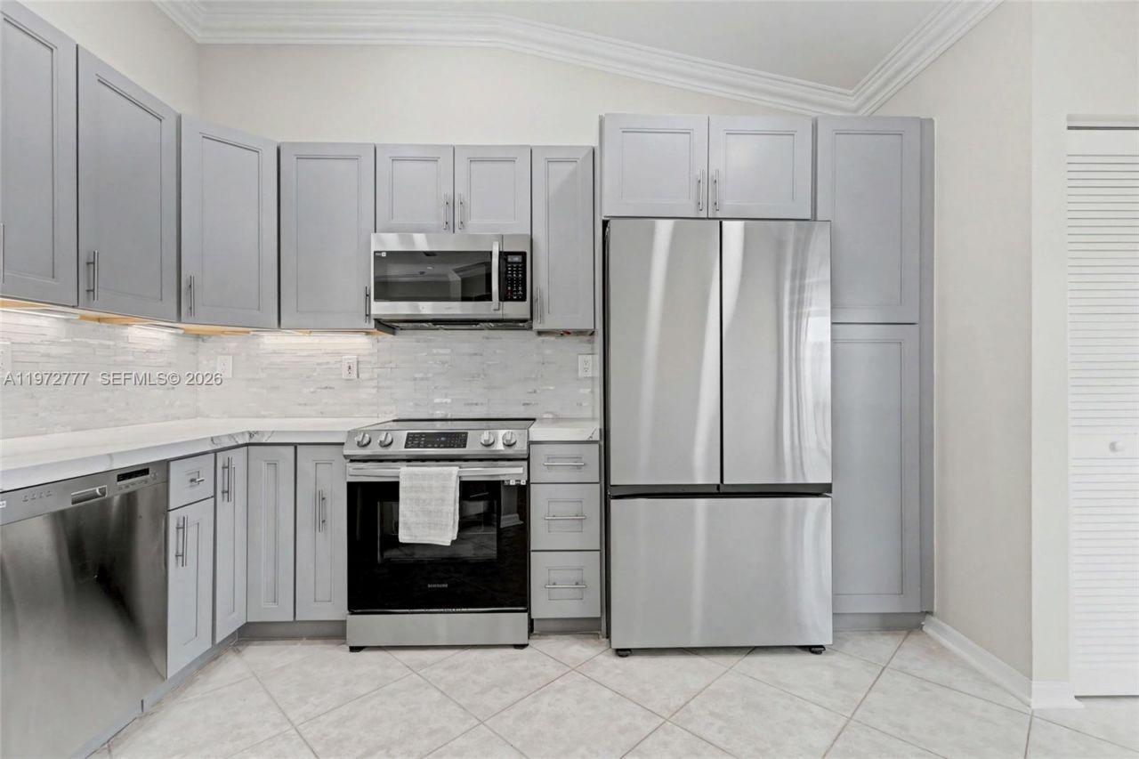 Discover the ultimate living experience in West Lake Village! This stunning corner one-story home with a one-car garage offers breathtaking views of Lake Melissa. Step inside to find an updated kitchen and bathrooms, featuring sleek stainless steel appliances and luxurious Calacatta Quartz countertops. Enjoy the convenience of electric blinds in the living room and main bedroom, and indulge in the main bathrooms free-standing soaking bathtub. With elegant crown molding throughout and no popcorn ...Discover the ultimate living experience in West Lake Village! This stunning corner one-story home with a one-car garage offers breathtaking views of Lake Melissa. Step inside to find an updated kitchen and bathrooms, featuring sleek stainless steel appliances and luxurious Calacatta Quartz countertops. Enjoy the convenience of electric blinds in the living room and main bedroom, and indulge in the main bathrooms free-standing soaking bathtub. With elegant crown molding throughout and no popcorn ceilings, this home is a true gem. Located less than a mile from the famous Hollywood Beach and Broadwalk, residents enjoy 24-hour security for peace of mind and access to incredible community amenities. Dive into the heated pool with a chiller, unwind in the hot tub, or work out with state-of-the-art gym equipment. The community also boasts tennis, gym, pickleball, and basketball court, a tot lot, and a community room with a kitchen for gatherings. Newly paved roads and four picturesque lakes surround this vibrant neighborhood, making it an exceptional place to call home. Dont miss this incredible opportunity to live in a lively and well-equipped community!