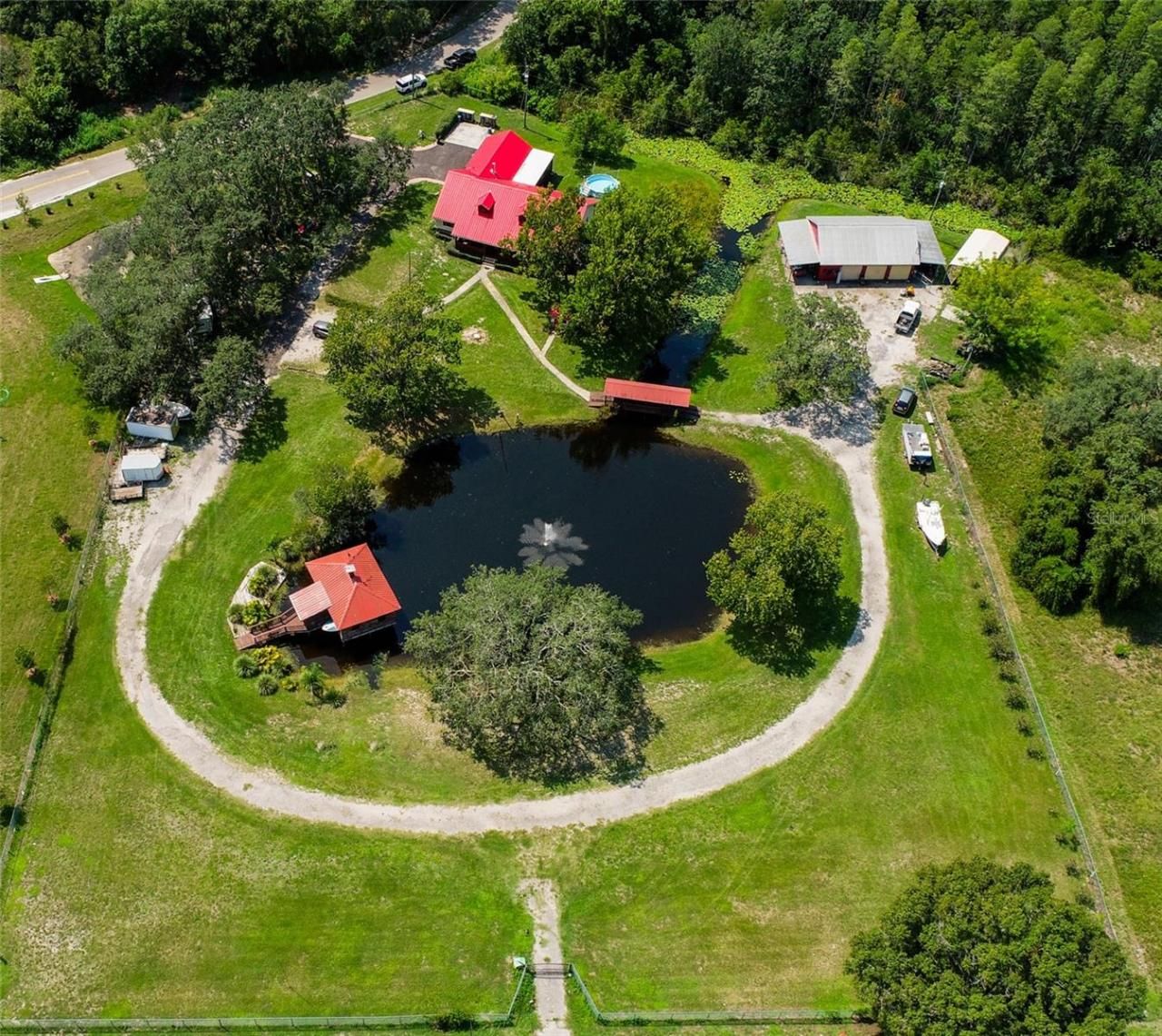 IT'S Incredible! LIVE, WORK, and PLAY ALL on 3.5 acres. It has 330 ft. on SR 52. Comfortable 3 bedroom, 2 bath home. First bathroom has a tub and a separate shower. The other bath has a large shower stall. The bedrooms are large, could be a 4 bed, if you used the upstairs loft room. Office space on the first floor. It has a large kitchen, with a cove around the stove. Eat off countertop and room for a dining room table. You can sit on the front porch overlooking the fish filled pond or take a wa...IT'S Incredible! LIVE, WORK, and PLAY ALL on 3.5 acres. It has 330 ft. on SR 52. Comfortable 3 bedroom, 2 bath home. First bathroom has a tub and a separate shower. The other bath has a large shower stall. The bedrooms are large, could be a 4 bed, if you used the upstairs loft room. Office space on the first floor. It has a large kitchen, with a cove around the stove. Eat off countertop and room for a dining room table. You can sit on the front porch overlooking the fish filled pond or take a walk across the covered bridge to the 3 plus car garage. A man cave is there, with an A/C. A boat house is on the pond with a view of the fountain. Electric and water are already available. Fans, screening are available when the bugs are bad. There is an RV space under the shade trees. There's so much more ! It all could be yours! Make an appt.