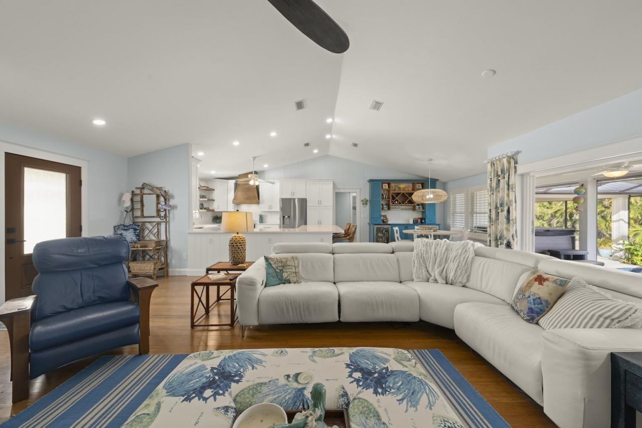 This exceptional residence blends custom design, durability, and luxury living. The outdoor oasis features a custom lagoon-style pool with waterfall, travertine pool deck, and a spacious open-air cabana, perfect for entertaining or relaxing in island style. An 18' x 8' oversized garage door easily accommodates larger vehicles, boats, or lifted SUVs.Built with peace of mind in mind, the home offers a new standing-seam metal roof, is elevated for flood protection, and includes full storm protectio...This exceptional residence blends custom design, durability, and luxury living. The outdoor oasis features a custom lagoon-style pool with waterfall, travertine pool deck, and a spacious open-air cabana, perfect for entertaining or relaxing in island style. An 18' x 8' oversized garage door easily accommodates larger vehicles, boats, or lifted SUVs.Built with peace of mind in mind, the home offers a new standing-seam metal roof, is elevated for flood protection, and includes full storm protection on all openings. A super high-efficiency HVAC system ensures comfort and energy savings year-round.Inside, enjoy custom interior trim, wood plantation shutters, and a chef's kitchen designed to impress?featuring high-quality cabinetry, premium appliances, and elegant quartz countertops. The primary suite boasts a luxurious quartz walk-in shower, creating a true spa-like retreat.This thoughtfully designed home delivers both refined living and resilient construction?ideal for full-time living, a second home, or a luxury island escape.