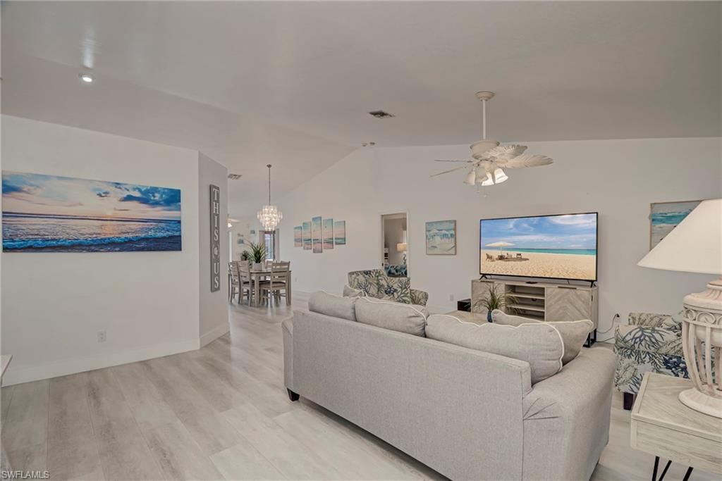 Calling all boaters, investors and anyone who wants to live the island life! This is more than a home, it is a lifestyle! As you drive onto the beginning of the island, you can already feel that you are about to enter a waterfront wonderland. Matlacha Isles is a deep water, non HOA community with direct gulf access and just a quick ride to Matlacha Pass and then the waterway possibilities are endless. Boat right from your backyard, complete with a 10,000 lb. boat lift and captains walk to Boca G...Calling all boaters, investors and anyone who wants to live the island life! This is more than a home, it is a lifestyle! As you drive onto the beginning of the island, you can already feel that you are about to enter a waterfront wonderland. Matlacha Isles is a deep water, non HOA community with direct gulf access and just a quick ride to Matlacha Pass and then the waterway possibilities are endless. Boat right from your backyard, complete with a 10,000 lb. boat lift and captains walk to Boca Grande, Sanibel Island, Fort Myers Beach or Cayo Costa. Don't feel like boating? Relax in your large pool and oversized lanai overlooking the water or pull out a fishing pole and see what the catch of the day is! The inside of this home is just as impressive as the outdoor features, over 1,9000 square feet of under air living space and tons of natural light throughout. The split bedroom floor plan offers privacy for guests and families, with the primary to the right and two spacious bedrooms to the left. Beautiful waterproof,pet proof laminate floors follow seamlessly through the entire house. The kitchen, living and dining areas are in an open floor plan format, but also with distinct functional areas where you can still see your beautiful waterfront view from almost every space. The roof was replaced in 2023 and the accordion style hurricane shutters both make this home ready for the elements. This home is being sold TURNKEY so it is truly perfect for anyone who is looking for their piece of Southwest Florida paradise in any capacity! Come see it today and see what this waterfront lifestyle is all about.