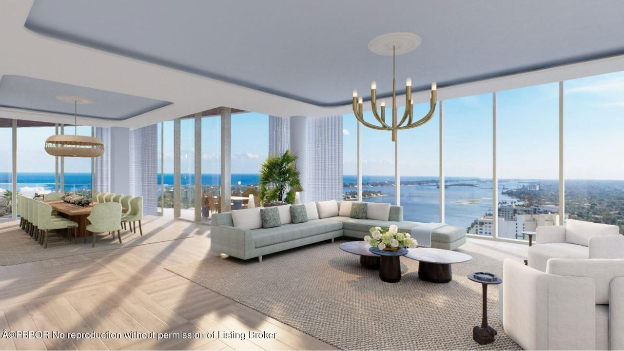 Spectacular Waterfront One-of-a-Kind Penthouse Condominium designed by Jean-Louis Deniot - Two full floors of customizable perfection, soaring ceilings, and walls of glass revealing sweeping views of the Intracoastal, Atlantic Ocean, Palm Beach Island, and West Palm Beach from every principal room. Top floor features private rooftop swimming pool, 360-degree wraparound balcony, fabulous outdoor kitchen, and cabana bath with dressing area, steam shower, and sauna. With 18,000+/- square feet of in...Spectacular Waterfront One-of-a-Kind Penthouse Condominium designed by Jean-Louis Deniot - Two full floors of customizable perfection, soaring ceilings, and walls of glass revealing sweeping views of the Intracoastal, Atlantic Ocean, Palm Beach Island, and West Palm Beach from every principal room. Top floor features private rooftop swimming pool, 360-degree wraparound balcony, fabulous outdoor kitchen, and cabana bath with dressing area, steam shower, and sauna. With 18,000+/- square feet of indoor and outdoor living space, this extravagant, designer-ready Penthouse is primed for interior customization. The first-floor features 9,000+/- indoor square footage with an additional 1,800+/- square feet of outdoor living and dining areas. A sculptured staircase connects the two floors, along with a private elevator. Custom interior allows for the option of 4 to 8 bedrooms and a variety of designs. The iconic new FortƩ on Flagler building will feature three full floors of opulent amenities. Fantastic downtown location just blocks from CityPlace, Palm Beach Island, and so many shops and restaurants.