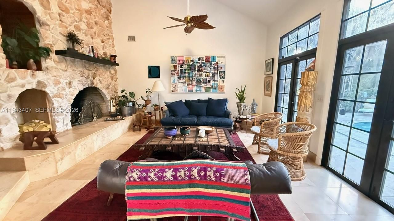 A rare opportunity for luxury acreage living in Palm Beach County, this distinctive Tudor-style estate delivers privacy, architectural character, lifestyle flexibility, and built-in income potential within the Fox Trail Equestrian Community. Set on 5 serene acres surrounded by mature pines, this property delivers a refined rural feel while remaining minutes from Wellington. A fully renovated barn apt ideal for guests or passive rental income (proven $3500 per month).The main residence is filled ...A rare opportunity for luxury acreage living in Palm Beach County, this distinctive Tudor-style estate delivers privacy, architectural character, lifestyle flexibility, and built-in income potential within the Fox Trail Equestrian Community. Set on 5 serene acres surrounded by mature pines, this property delivers a refined rural feel while remaining minutes from Wellington. A fully renovated barn apt ideal for guests or passive rental income (proven $3500 per month).The main residence is filled with natural light from skylights and features soaring high ceilings. A striking stone wall fireplace anchors the living room beneath extra-high ceilings and opens directly to the pool, creating a seamless indoor-outdoor connection. The home features three master bedrooms with walk-in closets, including two upstairs and a downstairs one with direct pool access. A guest half bathroom adds convenience, along with a full outdoors bathroom serving the barn and pool areas. A separate family room provides flexible space for a home office, gym, media room or even an extra guest room. Attached 2 car garage. Outdoor living feels private and resort-like, with the pool framed by tropical landscaping and an extra large screen. A new roof with transferable warranty provides peace of mind. The property includes a barn with 3 existing stalls (12x9), a tack room, and plenty of space for paddocks or riding areas, offering true equestrian potential with access to 29 miles of private bridle trails.