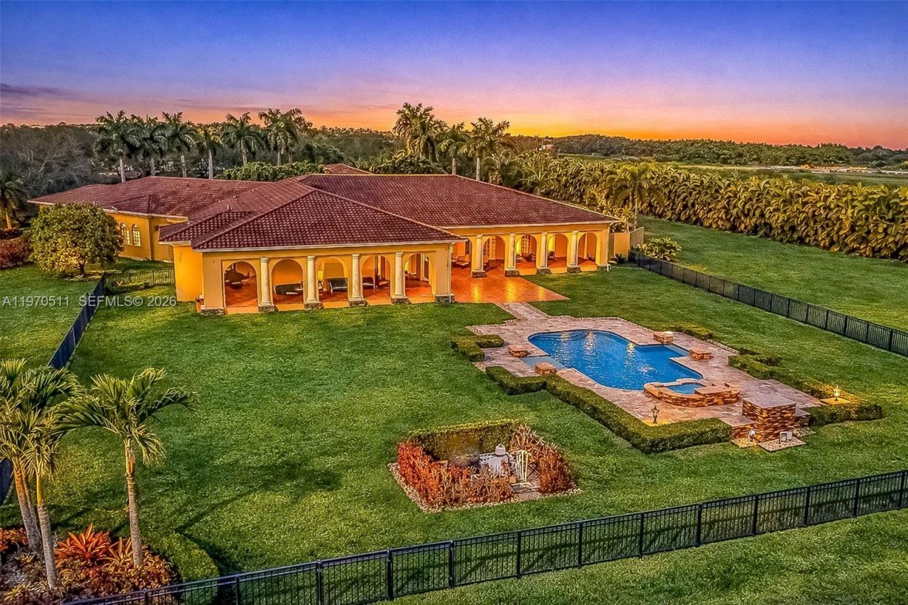Private double gated estate home set on over 4.8 acres, this exceptional property offers 9,943sqft of living space with a well-designed triple split floor plan. The main residence features 6 bedrooms plus an office including a master and jr. suite, 7.5 baths, chefs kitchen with double subzero refrigerators, double subzero freezers, subzero drink drawers, double miele ovens, built in miele coffee maker, subzero wine refrigerator and expansive island and counter seating. Windows and doors all PGT ...Private double gated estate home set on over 4.8 acres, this exceptional property offers 9,943sqft of living space with a well-designed triple split floor plan. The main residence features 6 bedrooms plus an office including a master and jr. suite, 7.5 baths, chefs kitchen with double subzero refrigerators, double subzero freezers, subzero drink drawers, double miele ovens, built in miele coffee maker, subzero wine refrigerator and expansive island and counter seating. Windows and doors all PGT impact glass. ĆĀ Metal roof on main house and rear structure. Lutron low voltage lighting, Control4 sound system and Cat6 wiring throughout the home. Full home Kohler 45kw generator. Designed for both entertaining and everyday comfort, the home includes a private theater, built-in bar, covered patio with summer kitchen, and a resort-style pool and spa. The expansive primary suite offers dual custom walk-in closets, large shower, and jetted tub. Jr suite boasts dual walk-in custom closets, double vanity bathroom, a shower/tub combo and a separate shower. A true highlight is the oversized four car dream garage with double-height ceilings, plus a detached mini-split AC temperature-controlled building currently used as additional garage space and a custom gym, with a powder room. A rare opportunity combining privacy, scale, and luxury built to the highest standards.