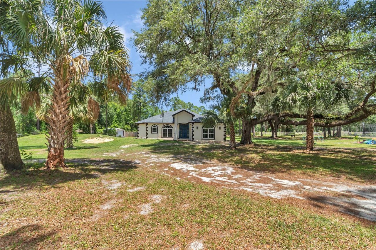 This gated, 4 acre secluded property sits perfectly at the end of a dead-end street! With views of horse farms on 2 sides and forest on the others offering a tranquil view from every angle! A homesteaders dream! This property is zoned A1 for horses and other animals with the whole property being perimeter fenced with no climb and wood. Close to the ATV trailhead, Hog Waller, Lake Kerr, and 90 minutes to the Atlantic Ocean or Gulf Coast! This completely renovated home has all of the modern upgrad...This gated, 4 acre secluded property sits perfectly at the end of a dead-end street! With views of horse farms on 2 sides and forest on the others offering a tranquil view from every angle! A homesteaders dream! This property is zoned A1 for horses and other animals with the whole property being perimeter fenced with no climb and wood. Close to the ATV trailhead, Hog Waller, Lake Kerr, and 90 minutes to the Atlantic Ocean or Gulf Coast! This completely renovated home has all of the modern upgrades you've been looking for. This spacious 3 bedroom 2 bath home features new interior and exterior paint, 23 roof, 23 air condition, 24 tankless hot water heater, 23 new whole house water filter and softener, 23 new impact windows and the drainfield was replaced in 22, 23 All the electrical was updated and new fans and lights installed in every room! Complete with 250 gallon gas, propane tank and generator transfer. FREE APPRAISAL - Credit at closing with preferred lender now until the 1st of April.Step inside your spacious new home with large 18in tile throughout, a living room with crown molding, tall arched windows and a gas fireplace that seamlessly transition to the kitchen with Stone countertops, solid oak cabinets, backsplash, new range and dishwasher, walk in pantry and a bar top overlooking the dining area with amazing views. To the left of the dining area is the oversized primary bedroom with tray ceilings, bamboo flooring and a large walk-in closet. The huge primary bathroom boasts a garden tub and separate tile surround shower. For your convenience the laundry room is located just off of the primary. Stepping across the home to the split floor plan are the second and third bedrooms, one with a large walk-in closet. The second bathroom is a jack n jill with combo tub/shower that is tile with separate vanities. Step outside through the French doors to the covered and enclosed lanai with views of the backyard filled with majestic Oaks, your own chicken coop with chickens, ducks and geese to stay and provide plenty of eggs! In the over 2400ft fenced garden are more than 100 plants meticulously planted in order to maximize yield are strawberries, blackberries, blueberries, a variety of vegetables, herbs and more. There are also two other garden plots ready to be planted totaling over 1,000 ft. There are over 50 fruit trees planted on the property as well, including a variety of citrus, apple, plum, peach, cherry, walnut, persimmons, figs, chestnuts, olives and more! There is a perfectly positioned fire pit, matching dog house and well house. The recently updated well house is near the garden for irrigation. As you enter the gate of the property to the left, you are greeted with a 24 x 36 x 14 RV carport with storage and a 200 amp separate meter. Additionally, there is a 12 x 24 garage storage shed near the home with power. This amazing property is completed with a custom treehouse that is two stories tall and sure to bring joy to any family! This once in a lifetime opportunity has it all! Close to boating, fishing, riding your four wheelers and enjoying the peaceful way of life! Energy efficient home with power bills monthly under 150\ month and the property tax bill is $ 5500 / year. HOI is $ 1600 / year!