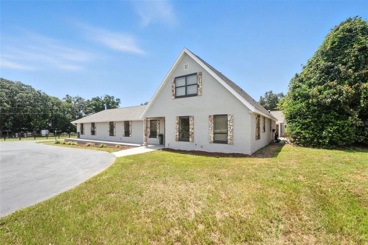 Welcome to your dream property: 7.84 acres of picturesque pastureland adorned with grand oaks, a gated entrance, and a Magnolia-lined driveway that sets the stage for elegance and privacy. Located on the peaceful south end of the farm, this estate blends thoughtful design with luxurious upgrades inside and out.The main home has been beautifully updated in 2025 with a brand-new roof, a new high-efficiency HVAC system, and fresh interior and exterior paint that gives the entire property a crisp, m...Welcome to your dream property: 7.84 acres of picturesque pastureland adorned with grand oaks, a gated entrance, and a Magnolia-lined driveway that sets the stage for elegance and privacy. Located on the peaceful south end of the farm, this estate blends thoughtful design with luxurious upgrades inside and out.The main home has been beautifully updated in 2025 with a brand-new roof, a new high-efficiency HVAC system, and fresh interior and exterior paint that gives the entire property a crisp, modern look. Inside, you'll find ceramic tile floors that mimic the warmth of hardwood, sleek granite countertops, state-of-the-art appliances, and a cozy double-sided fireplace that connects the living and dining areas seamlessly.Connected to the main residence by a lighted breezeway, the oversized garage, guest house, and expansive office create incredible flexibility for working from home, multigenerational living, or even short-term rental potential like Airbnb.Between the two structures sits the heart of the outdoor space: a stunning zero-entry pool with a brand-new filter (2025), complemented by an outdoor kitchen and a spacious entertainment patio and fire pit-perfect for gatherings or quiet evenings under the stars.For the hobbyist or adventurer, the second garage features two 9' bay doors and generous space for boats, up to six vehicles, or any combination of toys and tools. A 50-amp RV hookup adds even more convenience for those who travel or host. The property also includes multiple water heaters, a security system, as well as dual septic systems to accommodate both residences.Energy efficiency was a top priority in this meticulously designed home, from the solar-assisted front gate to the foil-wrapped roof trusses that help regulate interior temperatures and reduce energy costs.Equestrian enthusiasts will appreciate the three-stall, center aisle barn complete with a tack room, ready for horses or hobby farming. The beautifully updated guest apartment with washer and dryer enhances the property's versatility, whether used as an in-law suite or income-producing rental.Just eight minutes from The Villages, 19 minutes to downtown Ocala, and only 28 minutes to the World Equestrian Center, this property delivers the rare combination of privacy, functionality, and unbeatable location.Call today to schedule your private showing of this fully renovated and truly exceptional estate.