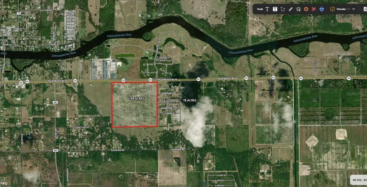Welcome to a truly unique opportunity to acquire 158 acres of prime land at the intersection of four-lane Highway 80 and First Street, in beautiful Alva, Florida. Perfectly situated opposite the luxury residential neighborhood Caloosa Preserve, this property embodies the future of Southwest Florida development. Whether you're a visionary developer, investor, or commercial entrepreneur, this landmark offering presents unlimited possibilities for growth and transformation in one of the region's mo...Welcome to a truly unique opportunity to acquire 158 acres of prime land at the intersection of four-lane Highway 80 and First Street, in beautiful Alva, Florida. Perfectly situated opposite the luxury residential neighborhood Caloosa Preserve, this property embodies the future of Southwest Florida development. Whether you're a visionary developer, investor, or commercial entrepreneur, this landmark offering presents unlimited possibilities for growth and transformation in one of the region's most desirable corridors.Location HighlightsNestled just 20 minutes east of vibrant Fort Myers and a short 40-minute drive to the pristine beaches of Southwest Florida, this property boasts unbeatable connectivity and accessibility. HWY 80 is one of the area's busiest thoroughfares, with consistent high traffic volumes that make the site ideal for a variety of commercial, retail, and residential uses. The intersection with First Street further amplifies visibility and convenience, ensuring that any future development will enjoy maximum exposure. Information provided herein is from sources deemed reliable but not guaranteed and is provided without the intention that any buyer rely upon it. Listing pictures are for pictorial representation purpose only. Listing Broker takes no responsibility for its accuracy and all information must be independently verified by buyers. There is an existing cattle lease on the property.