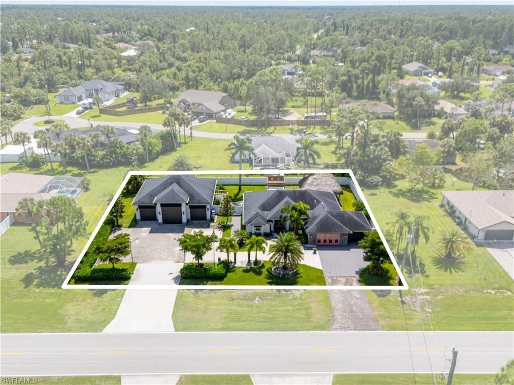 Step into luxury with this custom home built in 2018 by Walker Homes, offering 2,286 square feet of beautifully finished living space on an oversized half-acre lot in the heart of North Port. Featuring three bedrooms and two and a half baths, this thoughtfully designed residence boasts a split-bedroom layout with a spacious main-level primary suite, offering the perfect combination of comfort and privacy. The gourmet kitchen is a chef's dream, highlighted by a striking waterfall island, custom c...Step into luxury with this custom home built in 2018 by Walker Homes, offering 2,286 square feet of beautifully finished living space on an oversized half-acre lot in the heart of North Port. Featuring three bedrooms and two and a half baths, this thoughtfully designed residence boasts a split-bedroom layout with a spacious main-level primary suite, offering the perfect combination of comfort and privacy. The gourmet kitchen is a chef's dream, highlighted by a striking waterfall island, custom cabinetry, stainless steel appliances, and high-end finishes throughout. The open-concept living space features coffered ceilings and is bathed in natural light, with durable luxury vinyl plank flooring throughout the main living areas and luxury tile in the bathrooms for a modern, cohesive feel. A bonus room off the main living area provides additional flexible space-ideal for a home office, playroom, den, or guest area-and includes extra built-in storage with endless potential to fit your lifestyle needs. Step outside into your private tropical retreat. Take a dip in the in-ground pool, grill under the expansive covered lanai with built-in summer kitchen or unwind beneath the brand-new patio pergola. A charming tiki hut adds a touch of island living-perfect for entertaining or simply relaxing in the shade. The lush landscaping is supported by an irrigation well system and enhanced by solar lighting, creating a tranquil, resort-style setting. The home also includes a finished RV port/garage wing with its own private entrance, workshop, office space, and half bath-perfect for guests, hobbies, or extended workspace. With plenty of parking for RVs, boats, or extra vehicles and no HOA or CDD fees, this home offers flexibility and freedom rarely found in a custom property.