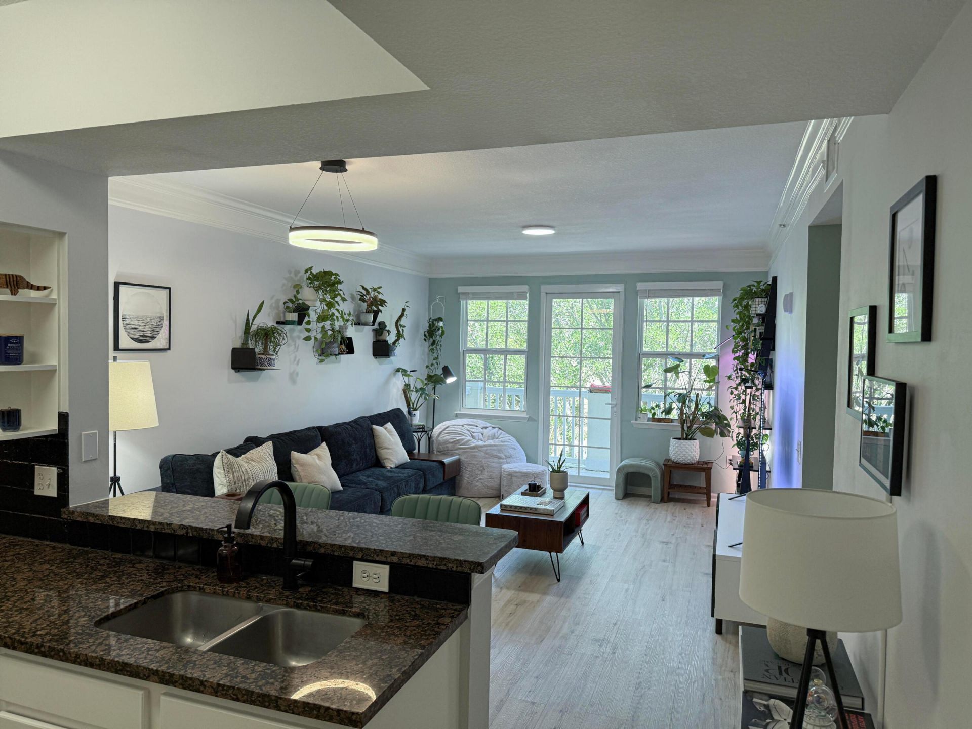 Top floor! Light & bright immaculate condo with balcony and pretty view. Lots of tasteful upgrades including countertops, SS appliances, LVT & tile flooring, custom mirror and awesome closets - WOW!! TWO storage closets with full size washer & dryer and loads of space left over! Large, bright flexible living space. ALL Impact Glass windows! Newer A/C 2023. Nothing to do, just move right in! The building is currently going through the final phase of planned exterior updates. Terrific location...Top floor! Light & bright immaculate condo with balcony and pretty view. Lots of tasteful upgrades including countertops, SS appliances, LVT & tile flooring, custom mirror and awesome closets - WOW!! TWO storage closets with full size washer & dryer and loads of space left over! Large, bright flexible living space. ALL Impact Glass windows! Newer A/C 2023. Nothing to do, just move right in! The building is currently going through the final phase of planned exterior updates. Terrific location close to Downtown Abacoa and Alton Town Center. 15 minutes to the beach/ocean and just about everything else you can think of. Building insurance, cable, Internet, water & sewer included in the HOA monthly fee! Come live the South Florida lifestyle! Come live the DREAM youve always wanted!