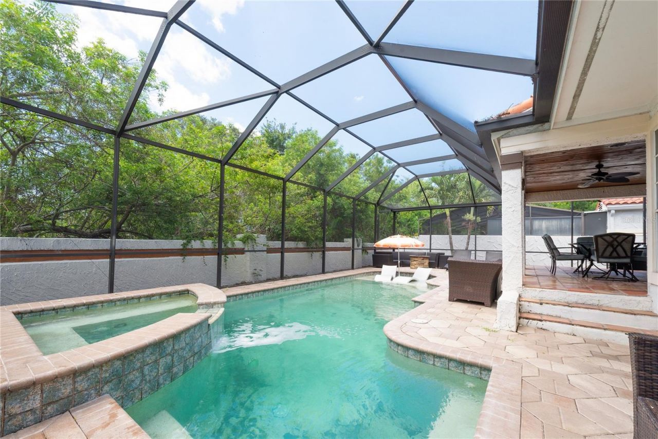 THIS MEDITERRANEAN POOL HOME HAS IT ALL - LOCATION, LUXURY & LIFESTYLE! Nestled in the highly sought-after Vizcaya community of Feather Sound, this beautiful 2-story Mediterranean-style salt water pool home offers elegance, space, and comfort with 3 bedrooms, 2 bathrooms, a den, 2 car garage and 2,383 sq. ft. of living space (3,236 sq. ft. total), this home sits on a 7,018 sq. ft. lot on a quiet cul-de-sac with no rear neighbors. Designed by Arthur Rutenberg who was ahead of this time, this home...THIS MEDITERRANEAN POOL HOME HAS IT ALL - LOCATION, LUXURY & LIFESTYLE! Nestled in the highly sought-after Vizcaya community of Feather Sound, this beautiful 2-story Mediterranean-style salt water pool home offers elegance, space, and comfort with 3 bedrooms, 2 bathrooms, a den, 2 car garage and 2,383 sq. ft. of living space (3,236 sq. ft. total), this home sits on a 7,018 sq. ft. lot on a quiet cul-de-sac with no rear neighbors. Designed by Arthur Rutenberg who was ahead of this time, this home feels modern, from the first moment you step inside. Be wowed by 20-foot ceilings, large windows allowing lots of light, durable ceramic plank tile floors in the living area and custom shades on all windows. The Mexican Saltillo tile adds warmth and character to a spacious kitchen, that was remodeled with level 5 granite countertops, stainless steel appliances and travertine backsplash. Enjoy a large center island with bar seating and extra storage-perfect for entertaining! The open-concept living and dining areas offer seamless access to the covered lanai and backyard oasis with luxury outdoor furniture that convey. Enjoy family meals with pool views, or host fun gatherings with the fully-equipped outdoor kitchen with propane grill and of course cozy evening with wood-burning fireplace. The screened-in pool area includes a large salt water pool, jacuzzi, waterfall, and sun shelf, ideal for lodging or safe play for your family. Downstairs you'll find a guest bedroom and full bath, while upstairs, the primary suite boasts 9-foot ceilings, double doors, hardwood floors, a spa-like bathroom with river stone vessel sinks, granite countertops, a jacuzzi tub with travertine walls, walk-in shower, and a massive walk-in closet. A second upstairs bedroom currently serves as a home theater, complete with a projector, screen, and surround sound-all equipment conveys. The spacious den could easily be converted into a 4th bedroom or used as a home office. Additional highlights includes red clay tile roof 2016, both A/C unit are 2016 but well maintained and serviced, brand new pool pump and plumbing (2025), private fenced yard, updated sprinkler system. The Association fees are $220/month. The location is just perfect - minutes from I-275, Tampa International Airport, short drive to Downtown St. Pete, and the Beaches, in walking distance to Feather Sound Country Club, offering golf, tennis, swimming, and year-round events in one of the Bay Area's most beautiful and walkable communities. This house is elevated. This is more than a home - it's a lifestyle and your fortress. Seller is ready to sell.