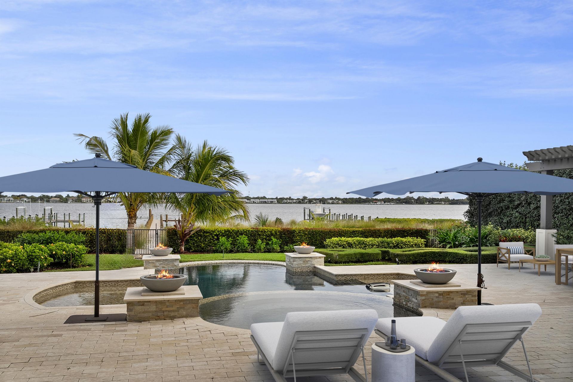 WIDE WATERFRONT - Experience waterfront luxury in this Riverbend original model estate, set farther back than neighboring homes for enhanced privacy. Nearly 6,000 sq ft with 5 bedrooms, 6 full and 2 half baths, and a 4-car garage, located in Martin County school district. A grand French door entry opens to soaring ceilings, a double staircase, and private elevator. The chefs kitchen features Sub-Zero and Wolf appliances, a Butlers pantry, and island. The great room captures wide water views. The...WIDE WATERFRONT - Experience waterfront luxury in this Riverbend original model estate, set farther back than neighboring homes for enhanced privacy. Nearly 6,000 sq ft with 5 bedrooms, 6 full and 2 half baths, and a 4-car garage, located in Martin County school district. A grand French door entry opens to soaring ceilings, a double staircase, and private elevator. The chefs kitchen features Sub-Zero and Wolf appliances, a Butlers pantry, and island. The great room captures wide water views. The primary suite offers a spa-style bath and custom closets. Upper and lower porches include automated screens, fireplace, and TV. Outdoor living includes a heated saltwater pool, deep-water dock, and two 16,000-lb boat lifts with ocean access and no fixed bridges. Located in a gated community.