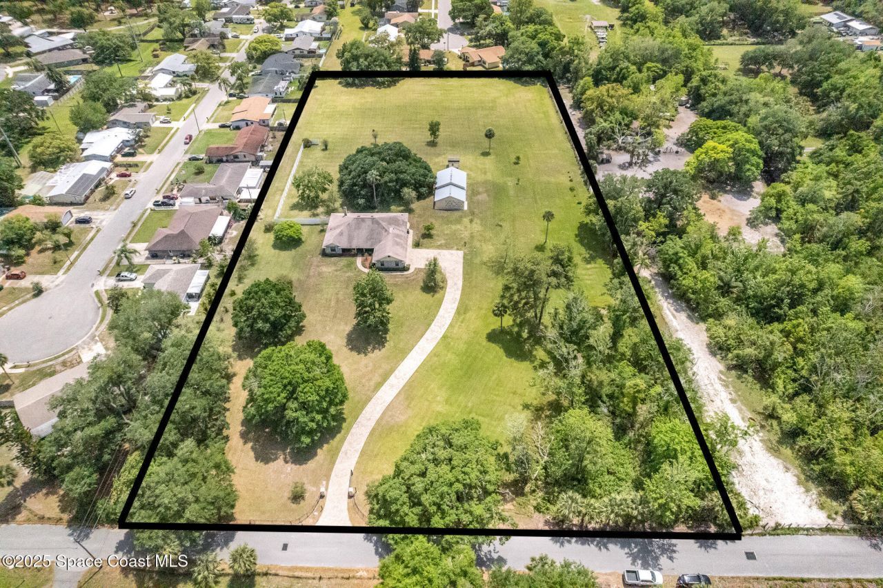 Truly rare find, zoned agricultural/residential, well maintained 4 bedroom, 3 bathroom, 2570 sqft under air 3641 under roof, concrete block, 3 car garage home on 4.88 cleared acres w/ Barn (36x27) located in Titusville. This spacious home offers eat-in kitchen w/custom wood cabinetry, breakfast bar & nook, formal dining room, den, formal living room w/ vaulted ceiling, skylight & fireplace, & Family/FL room, Primary suite offers tiled walk-in shower, double sinks, large walk-in closet, 4th bedro...Truly rare find, zoned agricultural/residential, well maintained 4 bedroom, 3 bathroom, 2570 sqft under air 3641 under roof, concrete block, 3 car garage home on 4.88 cleared acres w/ Barn (36x27) located in Titusville. This spacious home offers eat-in kitchen w/custom wood cabinetry, breakfast bar & nook, formal dining room, den, formal living room w/ vaulted ceiling, skylight & fireplace, & Family/FL room, Primary suite offers tiled walk-in shower, double sinks, large walk-in closet, 4th bedroom has built-in work station. 3rd bathroom is in garage. Property is completely fenced w/ solar powered electric entrance gate & paver driveway. The barn offers tack room, barn & overhead garage doors, loft, & pull through (carport 27 long). The property is not in a flood zone . It provides endless possibilities, whether youre dreaming of a private homestead, mini-farm, or peaceful country retreat their is plenty of room for comfort living, entertaining, or multi-generational living.