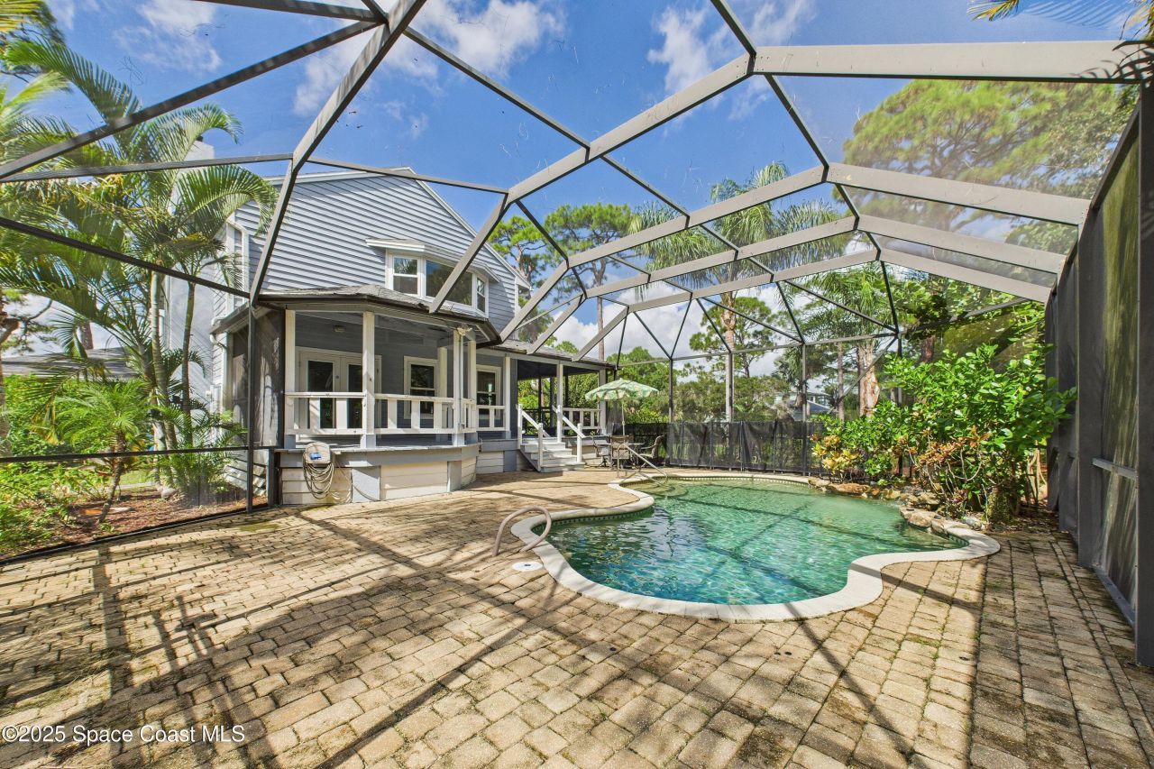 A step above the rest! This stunning 5-bed, 4-bath country-style home on a lush 1-acre lot in the prestigious, riverfront community of Rocky Point is ready for you! Enjoy the charm of a full-length wraparound front porch?perfect for watching rocket launches?and a circular back porch just steps from the screened-in pool with a tranquil stone waterfall. With two master suites, including a first-floor option with its own private porch, this home is ideal for multi-generational living. Inside, cozy ...A step above the rest! This stunning 5-bed, 4-bath country-style home on a lush 1-acre lot in the prestigious, riverfront community of Rocky Point is ready for you! Enjoy the charm of a full-length wraparound front porch?perfect for watching rocket launches?and a circular back porch just steps from the screened-in pool with a tranquil stone waterfall. With two master suites, including a first-floor option with its own private porch, this home is ideal for multi-generational living. Inside, cozy up by the wood-burning fireplace and enjoy updates like impact windows, a 2020 roof, and 2022 A/C. Rocky Point offers privacy, prestige, and its own community dock along the Indian River. Come experience the lifestyle youve been dreaming of!