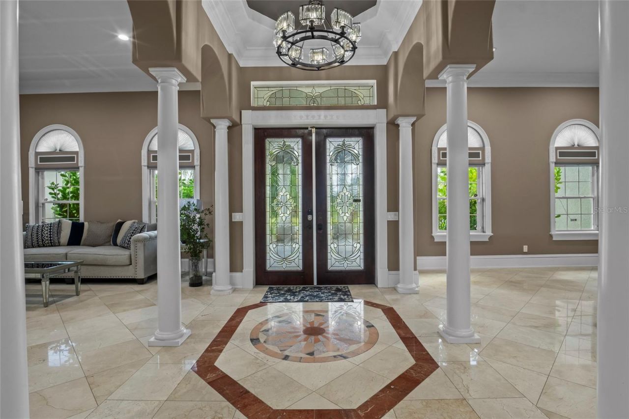 Discover your own tropical paradise in this exquisite 4-bedroom, 4-bathroom Mediterranean-style home, perfectly situated on a serene 1.86-acre lot. Surrounded by majestic palms and introduced by a grand porte-cochere, this residence radiates timeless elegance, privacy, and sophistication.Inside, 5,478 square feet of air-conditioned living space welcomes you with a grand foyer, formal living and dining rooms, and striking architectural details such as Roman columns, marble floors, and graceful ar...Discover your own tropical paradise in this exquisite 4-bedroom, 4-bathroom Mediterranean-style home, perfectly situated on a serene 1.86-acre lot. Surrounded by majestic palms and introduced by a grand porte-cochere, this residence radiates timeless elegance, privacy, and sophistication.Inside, 5,478 square feet of air-conditioned living space welcomes you with a grand foyer, formal living and dining rooms, and striking architectural details such as Roman columns, marble floors, and graceful archways.The chef's kitchen is a dream, featuring a spacious island, granite countertops, gas cooktop, double built-in ovens, and abundant custom cabinetry. The master suite offers a private retreat with a sitting area, French doors to the lanai, and a spa-inspired bath complete with a Hydro Massage tub, separate shower, and three walk-in closets.Step outside to your expansive screened lanai, where relaxation and entertainment come naturally. Enjoy the sparkling pool, outdoor kitchen and grill, and tranquil pond views-the perfect setting for gatherings or quiet evenings under the Florida sky.Ideally located in the Wedgefield community, this property combines tranquility with convenience-just minutes from Canaveral National Seashore, local beaches, and world-class attractions such as Walt Disney World and Universal Orlando Resort.