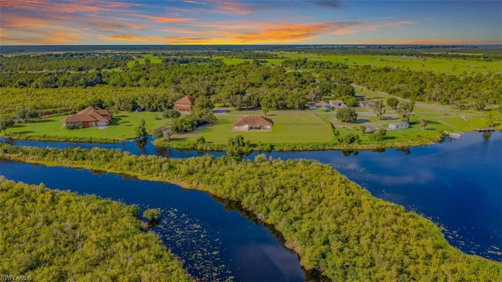Breathtaking Multi-family waterfront estate offers privacy, a custom main house of 7181 sq ft of ultimate luxury w/4 en-suites, pool bath & half bath, 3/3 guest house with 6 car garage, acreage, private boat ramp, dock & natural spring. Built to withstand CAT 5 hurricanes, CBS, metal roof, X flood zone (no flood insurance required), high elevation, no flooding. Two Masters offer his/her vanities, custom closets, rain showers & Jacuzzis. Flooring is travertine/marble/onyx & wood. Gourmet kitchen...Breathtaking Multi-family waterfront estate offers privacy, a custom main house of 7181 sq ft of ultimate luxury w/4 en-suites, pool bath & half bath, 3/3 guest house with 6 car garage, acreage, private boat ramp, dock & natural spring. Built to withstand CAT 5 hurricanes, CBS, metal roof, X flood zone (no flood insurance required), high elevation, no flooding. Two Masters offer his/her vanities, custom closets, rain showers & Jacuzzis. Flooring is travertine/marble/onyx & wood. Gourmet kitchen with Brookwood cabinetry & “jeweled” granite countertops, double sinks, double ovens, bread warmer, island with a gas cooktop, breakfast nook, wine room, huge walk-in pantry, & vast great room with a custom bar. Plantation shutters, wraparound waterfront veranda & private balconies up, Icynene insulation (low electric bill), elevator shaft, whole house security system. This property is stunning, Zoned AG Unspoiled scenery as this breathtaking Florida Ecosystem encompasses miles of different waterways connecting to the Peace River and Charlotte Harbor. Property is filled with birdlife, bring your horses, boats, planes, or helicopter. You can land and store your helicopter or seaplane as the utilities are underground. F-13 airport across street, Punta Gorda Airport 10 miles away.
