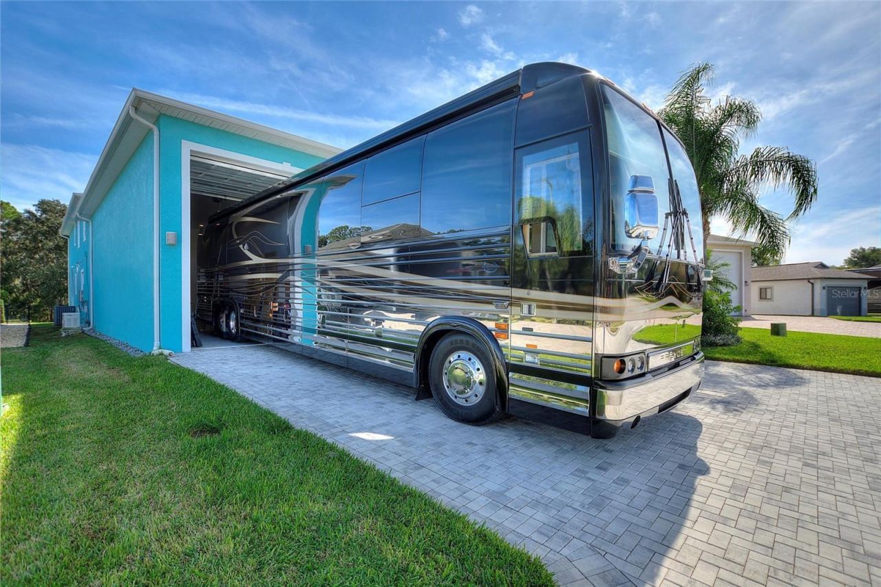 One or more photo(s) has been virtually staged. Waterfront Estate with 50-Foot RV Garage - Built for the Florida LifestyleDiscover exceptional lakefront living on 100 feet of pristine waterfront with the potential to build your private dock. This impressive 3,936 sq ft two-story home on a 9,470 sq ft lot combines luxury, versatility, and serious functionality - including a rare 50-foot attached RV garage perfect for your motorhome, boat, or toys.Prime Location: Located in a gated community with ...One or more photo(s) has been virtually staged. Waterfront Estate with 50-Foot RV Garage - Built for the Florida LifestyleDiscover exceptional lakefront living on 100 feet of pristine waterfront with the potential to build your private dock. This impressive 3,936 sq ft two-story home on a 9,470 sq ft lot combines luxury, versatility, and serious functionality - including a rare 50-foot attached RV garage perfect for your motorhome, boat, or toys.Prime Location: Located in a gated community with 24-hour security, you're just a few hundred feet from one of two resort-style clubhouses featuring a pool, hot tub, fitness center, tennis and pickleball courts, and more - enjoy five-star amenities without leaving your neighborhood. A second community clubhouse offers an additional pool, hot tub, shuffleboard courts, and a community pontoon boat available for homeowner use.The Home: 4 spacious bedrooms (2 down, 2 up) plus flexible bonus space Dedicated office/library with fully custom built-in desk, cabinetry, and shelving - a professional workspace designed for productivity and sophistication 3 full bathrooms including dual primary suites Expansive chef's kitchen with 14-foot island seating six, Frigidaire five-burner induction cooktop with power boil, double ovens, dual sinks, and abundant storage. Multiple sliding glass doors frame breathtaking lakefront views, seamlessly connecting indoor entertaining with outdoor living. Smart home technology with internet-based lighting and accessory control Propane water heating plus whole-home backup generatorUnique Primary Suite: The oversized primary bedroom features an exceptional layout with separate his-and-hers bathrooms connected by a shared luxury shower, plus a private soaking tub and heated towel bars - a spa-like retreat at home.Upstairs Versatility: Two generous rooms offer endless possibilities - additional bedrooms, office space, media room, or hobby areas. The 340 sq ft room includes a full bathroom with shower, while the 400 sq ft room provides abundant space for storage or projects.Workshop & Creative Space: 400 sq ft climate-controlled attached workshop with ceiling-mounted dust collection system - perfect for woodworking, crafts, hobbies, or any passion project Extensive storage including under-stair closets and attic access Pre-plumbed propane lines ready for future upgrades (gas dryer, cooktop, fireplace, outdoor grill)Lakefront Living: Enjoy your private 100-foot waterfront with room to build a dock - perfect for boating, fishing, kayaking, or simply watching Florida sunsets from your own shore.This isn't just a home - it's a lifestyle property designed for those who want it all.