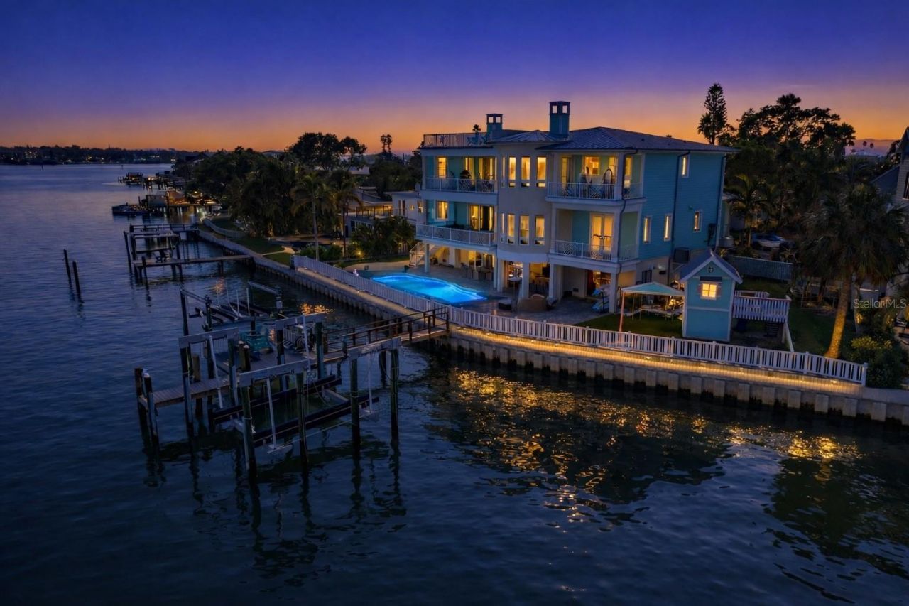 Discover unparalleled waterfront living in this magnificent 6-bedroom, 6.5-bath residence, perfectly situated on a rare double waterfront lot in Indian Rocks Beach. Offering approximately 146 feet of water frontage, an extra-large seawall, private dock, and boat lift, this home is a boater's dream and an entertainer's paradise.Step inside to experience seamless open-concept living designed for both grand entertaining and comfortable everyday life. The chef's gourmet kitchen features a massive is...Discover unparalleled waterfront living in this magnificent 6-bedroom, 6.5-bath residence, perfectly situated on a rare double waterfront lot in Indian Rocks Beach. Offering approximately 146 feet of water frontage, an extra-large seawall, private dock, and boat lift, this home is a boater's dream and an entertainer's paradise.Step inside to experience seamless open-concept living designed for both grand entertaining and comfortable everyday life. The chef's gourmet kitchen features a massive island, high-end professional appliances, and a walk-in pantry, creating a space that is as functional as it is stunning. Impact-rated windows and doors, solid block construction, and a metal roof provide peace of mind and enduring quality.Resort-style amenities await outdoors, including a Freestyle PebbleTec saltwater pool and a fully equipped outdoor kitchen, ideal for alfresco dining and waterfront gatherings. An elevator offers effortless access to all levels, while a whole-house audio system, smart home technology, and generator ensure comfort, convenience, and security.The primary suite is a true retreat, featuring a fireplace, private sitting area, expansive walk-in closet accented by a Swarovski chandelier, and a spa-inspired en-suite bath with soaking tub, oversized shower, and private balcony. With seven covered balconies, en-suite baths for every bedroom, two laundry rooms, a dedicated office, and a 3+ car garage, every detail has been thoughtfully designed to elevate the waterfront lifestyle.This extraordinary home offers a rare opportunity to enjoy luxury, space, and waterfront adventure in one of the area's most desirable beach communities. Schedule your private showing today and experience coastal living at its finest. Buyer to verify all room sizes and dimensions are approximate.