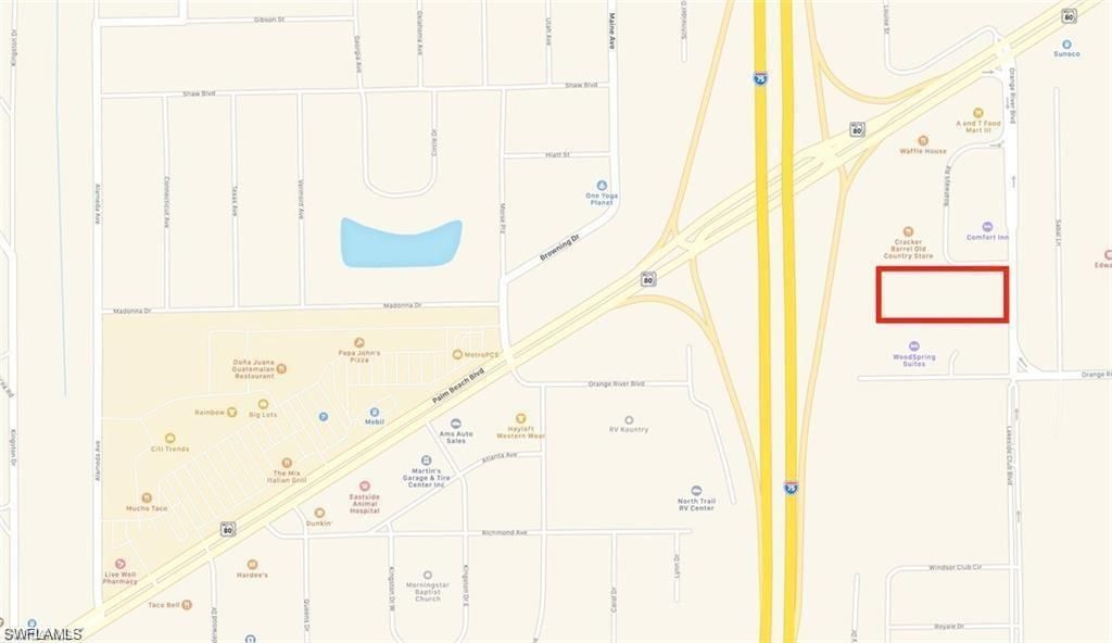 Start construction immediately!!! Fully developed I-75 interstate hotel building site on Exit 141 (Downtown Fort Myers) directly adjacent to CRACKER BARREL. Seller will include optional full permit planning, engineering, and contractor bidding to build a 83-room La Quinta/Wyndham hotel (site is zoned for 99 rooms max if needed). Seller was able to obtain significant development incentive monies with franchise agreement from a national flag. Great investor opportunity. Parcel is zones CPD (many o...Start construction immediately!!! Fully developed I-75 interstate hotel building site on Exit 141 (Downtown Fort Myers) directly adjacent to CRACKER BARREL. Seller will include optional full permit planning, engineering, and contractor bidding to build a 83-room La Quinta/Wyndham hotel (site is zoned for 99 rooms max if needed). Seller was able to obtain significant development incentive monies with franchise agreement from a national flag. Great investor opportunity. Parcel is zones CPD (many other uses allowed).