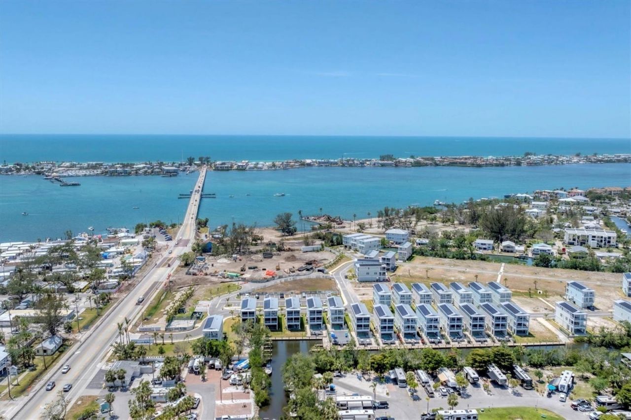 Hurricane Resistant, Coastal Sustainable Luxury - Steps from Anna Maria Island's white sands! Experience the ease and elegance of everyday coastal living in this beautifully designed, eco-conscious home just minutes from the sugar-white beaches of Anna Maria Island. Blending modern luxury with sustainability, this move-in-ready 3-bedroom, 2.5-bath elevated residence is ideal for those seeking a primary home or seasonal retreat, with the flexibility to rent when not in use. Elevated 17.5 feet abo...Hurricane Resistant, Coastal Sustainable Luxury - Steps from Anna Maria Island's white sands! Experience the ease and elegance of everyday coastal living in this beautifully designed, eco-conscious home just minutes from the sugar-white beaches of Anna Maria Island. Blending modern luxury with sustainability, this move-in-ready 3-bedroom, 2.5-bath elevated residence is ideal for those seeking a primary home or seasonal retreat, with the flexibility to rent when not in use. Elevated 17.5 feet above the 100-year floodplain on a private corner lot, this home offers unobstructed sunset and waterfront views alongside enhanced privacy and long-term peace of mind. Located in Hunters Point, an exclusive, gated, hurricane-resilient coastal enclave, the home is a shining example of future-ready design-both elegant and exceptionally efficient. Lovingly upgraded by the current owners, this residence is filled with thoughtful touches, including: designer lighting, mirrors, and custom window treatments, built-in closet systems and ample storage throughout, additional cabinetry in the laundry and garage, full fencing, screened porches, and a Tesla charger. Two garage-level storage closets-perfect for beach gear, tools, or owner lock-off. Turnkey Furnished with a strong offer, this home is ready for you to move in and enjoy! Inside, elegant finishes include shiplap ceilings, luxury vinyl plank flooring, Quartz countertops, and premium stainless-steel appliances, creating a bright, welcoming environment that's both stylish and durable. The floorplan flows effortlessly between open-concept living spaces and multiple balconies on both east and west sides-ideal for morning coffee or sunset cocktails with panoramic water views. Retreat to your private primary suite upstairs, complete with a screened balcony overlooking tranquil waterways where manatees glide and birds soar. Two additional bedrooms share a convenient Jack-and-Jill bath, making this home as functional as it is beautiful. Sustainable and smart living - Built with a deep commitment to resilience and energy efficiency, this home features: PGT impact-resistant windows, advanced insulation and high-efficiency systems, a solar panel and Sonnen battery storage system, smart home technology for climate, lighting, and security controls. The result? A net-zero energy home that's low-maintenance, cost-effective, and perfectly suited for year-round living. Outdoor Living & Boating Lifestyle - Enjoy easy outdoor entertaining on the ground-level patio, or take advantage of your deeded boat slip and private dock with water service-ideal for vessels up to 25 feet. With direct Intracoastal and Gulf access, it's a dream for casual cruisers and seasoned boaters alike. Resort-Style Amenities - Right Outside Your Door, Under Construction Now! Amenities will include a resort-style pool, spa, and fitness center, and will be located directly in front of this home-adding even more convenience to your lifestyle while enhancing long-term value. Whether you're searching for a peaceful full-time residence, a seasonal escape, or a flexible home with rental potential, this is a rare opportunity to enjoy luxury, sustainability, and security in one of Florida's most forward-thinking coastal communities. Award winning Hunters Point, renowned as the only one of its kind in America.