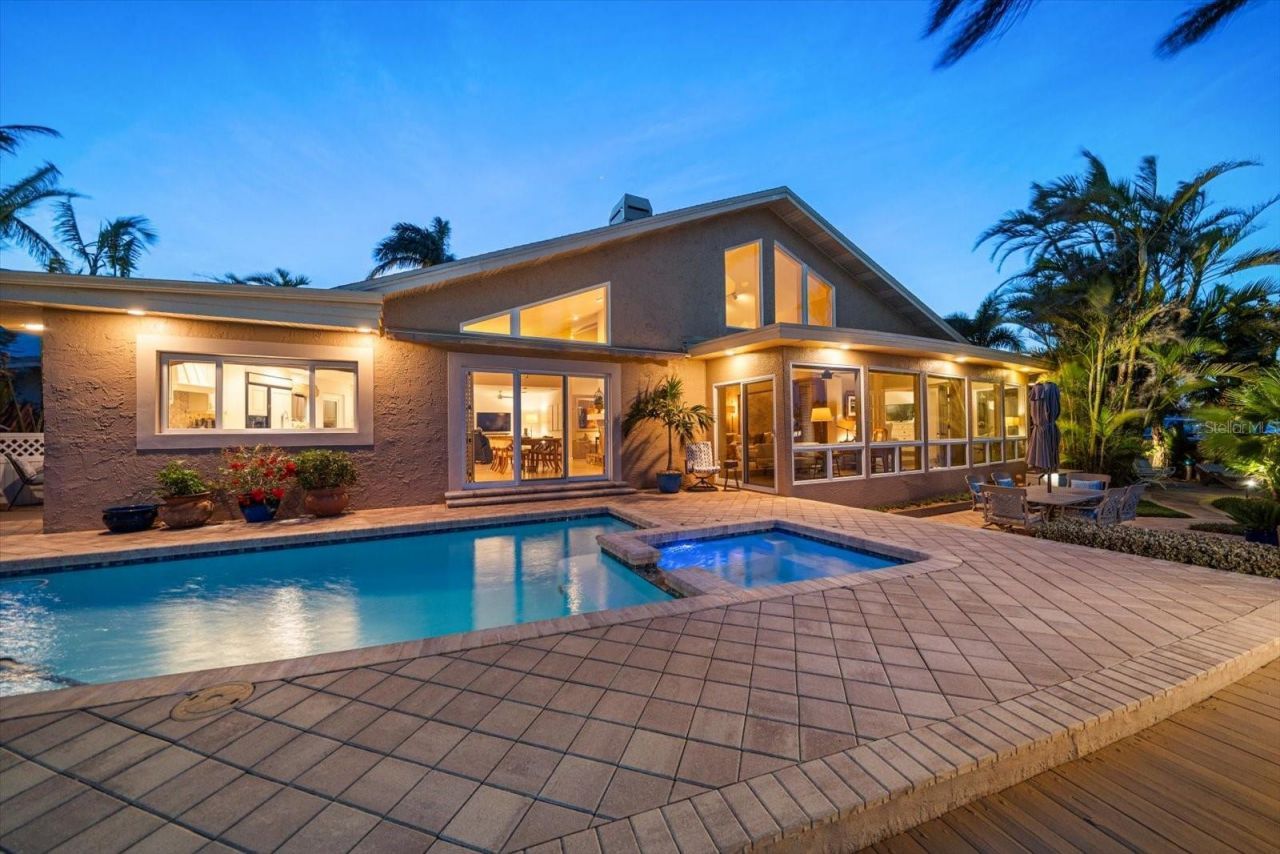 Welcome to waterfront living at its finest in Belleair Beach! Positioned high and dry during Hurricane Helene, this exceptional property offers 119 feet of unobstructed deep-water frontage-perfect for boating enthusiasts with direct Gulf access. The unique lot placement ensures the dock is set to the side, preserving panoramic views of the Intracoastal Waterway from nearly every room.This beautifully updated 2-bedroom, 3-bathroom home (currently configured as 2 bedrooms + den that could be conve...Welcome to waterfront living at its finest in Belleair Beach! Positioned high and dry during Hurricane Helene, this exceptional property offers 119 feet of unobstructed deep-water frontage-perfect for boating enthusiasts with direct Gulf access. The unique lot placement ensures the dock is set to the side, preserving panoramic views of the Intracoastal Waterway from nearly every room.This beautifully updated 2-bedroom, 3-bathroom home (currently configured as 2 bedrooms + den that could be converted back to a 3rd bedroom) boasts a spacious 2,679 sq. ft. layout on a private, oversized lot. Inside, enjoy a light-filled open floor plan with ceramic tile flooring, a wood-burning fireplace, and expansive windows framing tranquil water views. The chef's kitchen features Corian countertops, Fisher Paykel drawer dishwasher, reverse osmosis drinking water filtration, and seamless flow into the dining and living spaces-ideal for entertaining.Retreat to your private backyard oasis, complete with a heated pool and spa (refinished with durable fiberglass), SunSetter awnings, and a fully renovated patio with sun-filtering shades and plantation shutters for ultimate comfort. The north zone HVAC system was fully replaced in 2023, and the roof was redone in 2018, ensuring peace of mind.Waterfront highlights include a grandfathered dock replacement opportunity, providing flexibility for future upgrades. Enjoy serene mornings spotting dolphins, evening fireworks on the horizon, and the privacy that comes with a prime cul-de-sac location.Residents of Belleair Beach enjoy private beach access, parks, tennis courts, and the relaxed charm of this coveted Gulf Coast community-all while being just minutes from top dining, shopping, and entertainment.If you're looking for privacy, panoramic water views, and endless potential, this is the home for you.