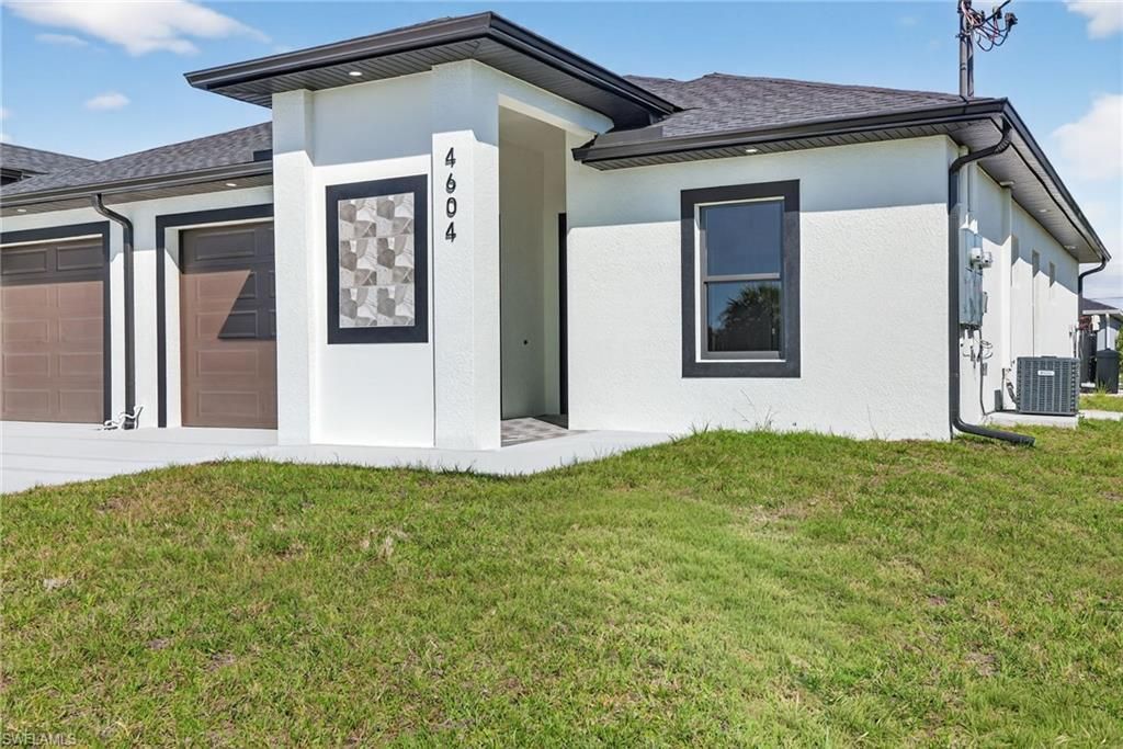 New construction duplex with two identical 3 bedroom and 2 bathroom layouts designed for durability and flexible use. Concrete block construction, impact resistant windows and doors, tile flooring throughout, quartz surfaces, and epoxy finished garages reduce long term maintenance compared to typical builder grade duplexes. | Both units feature an 8 foot glass ESW front door opening into a main living area with approximately 10.5 foot tray ceilings...New construction duplex with two identical 3 bedroom and 2 bathroom layouts designed for durability and flexible use. Concrete block construction, impact resistant windows and doors, tile flooring throughout, quartz surfaces, and epoxy finished garages reduce long term maintenance compared to typical builder grade duplexes. | Both units feature an 8 foot glass ESW front door opening into a main living area with approximately 10.5 foot tray ceilings. A full stainless appliance package, including washer and dryer, is included. Private covered patios are separated for added privacy, and wide paved driveways allow comfortable access for larger vehicles. | Positioned across from wooded Westminster Golf Club property, creating an open feel with no immediate development across the street. Convenient access into Fort Myers supports everyday commuting, while the two bedroom layout with a dedicated den provides added flexibility for office, guest, or extended living space.