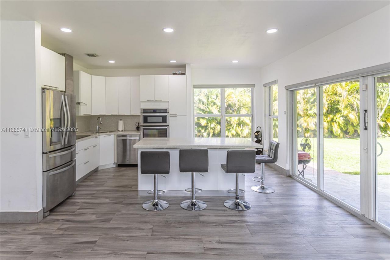 Beautifully renovated home sitting on a oversize lot in the heart of small Town Miami Springs in the premium area of the golf course. Discover a chefs kitchen with stainless steel appliances & white cabinetry and leading to a backyard featuring custom patio with fence and alley access perfect for RV/Boat, an in-ground pool, mango tree and is the perfect oasis for outdoor entertainment. Floors are ceramic, porcelain tile and wood. Other features include: front porch, hurricane impact windows and ...Beautifully renovated home sitting on a oversize lot in the heart of small Town Miami Springs in the premium area of the golf course. Discover a chefs kitchen with stainless steel appliances & white cabinetry and leading to a backyard featuring custom patio with fence and alley access perfect for RV/Boat, an in-ground pool, mango tree and is the perfect oasis for outdoor entertainment. Floors are ceramic, porcelain tile and wood. Other features include: front porch, hurricane impact windows and doors, newer roof in 2023, laundry room, exercise room, california closets, high ceilings. Located near aquatic center, playhouse, tennis court. Easy Access to highways, 30 mins to Beach, 10 mins to Miami Airport. This property is immaculate, well-cared for, and ready for new owners. Welcome home!