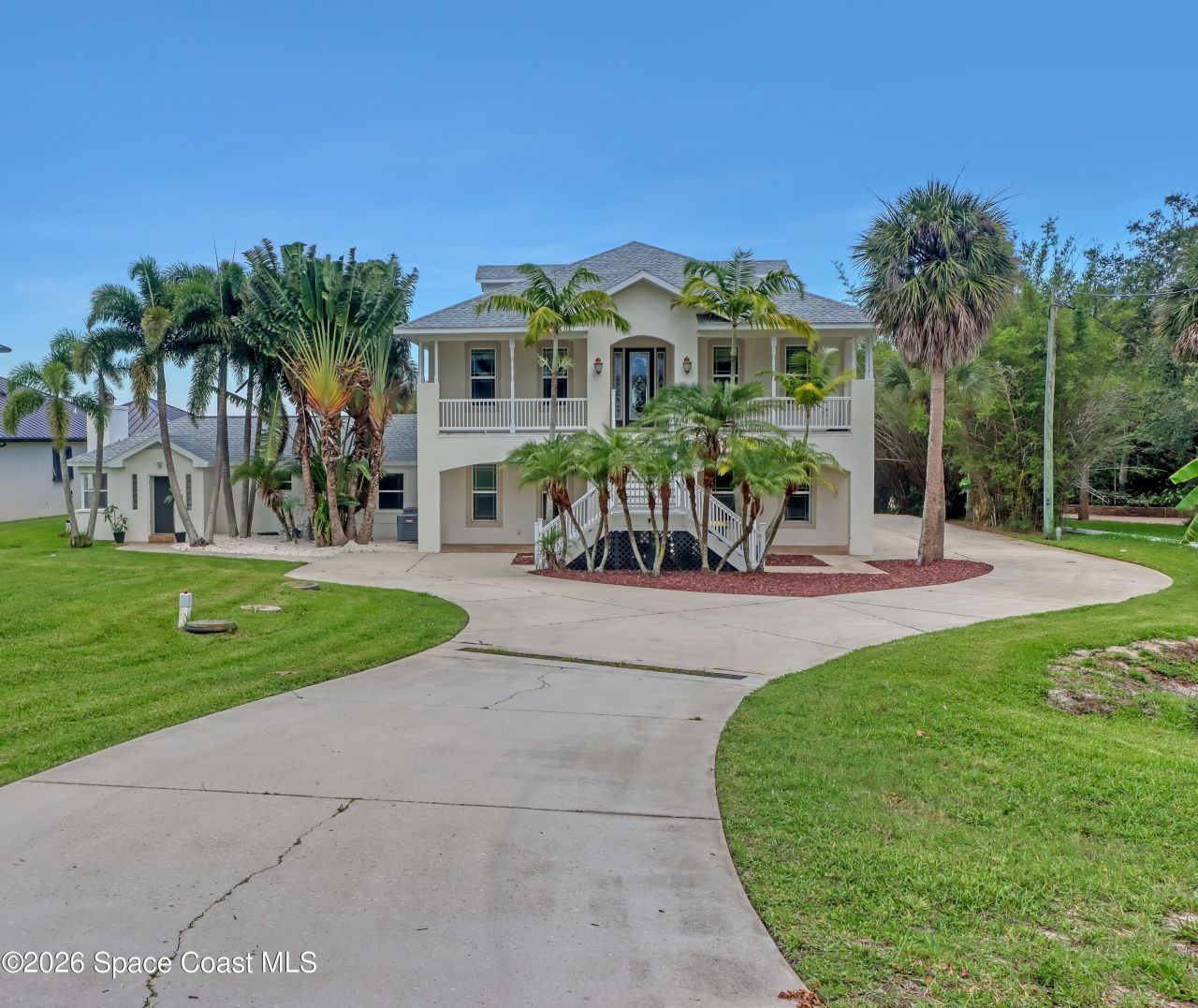 Sweeping Indian River views from this resort style home offering multiple living configurations. Designed for MULTI-GENERATIONAL living (3 FULL kitchens and 2 laundry), in home care providers or people that love to entertain. NO HOA10 foot ceilings, generous layout with nearly 7000 square feet of living & scores of windows make this home truly unique and breathtaking. A private acre & 3 car garage add to the appeal.Can be split in up to 3 separate units or opened up to be one massive house. 2ND ...Sweeping Indian River views from this resort style home offering multiple living configurations. Designed for MULTI-GENERATIONAL living (3 FULL kitchens and 2 laundry), in home care providers or people that love to entertain. NO HOA10 foot ceilings, generous layout with nearly 7000 square feet of living & scores of windows make this home truly unique and breathtaking. A private acre & 3 car garage add to the appeal.Can be split in up to 3 separate units or opened up to be one massive house. 2ND FLOOR: 4 Bedrooms, 2 bathrooms, laundry and huge covered patio overlooks expansive lawn, pool and river. Panoramic views from kitchen/living/dining areas and primary suite.1ST FLOOR:* Huge Game/Theatre Room with walls of windows and panoramic views of the river.* Separate (but attached) mother in law suite with 2 bedrooms and full kitchen, dining and living with fireplace. * Additional 2 bedrooms, 2 bathrooms, living area and laundry is flexible in configuration.