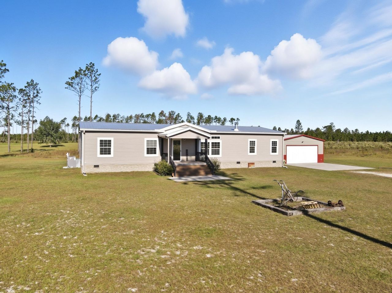 Unique opportunity to own approximately 40.95 acres of well-maintained agricultural land in rural Madison County. The majority of the property is newly planted pines, professionally sprayed and cared for since planting?ideal for future timber potential or continued agricultural use. Included is a 2010 four bedroom and two bathroom mobile home in pristine condition, featuring numerous upgrades throughout. Large rooms, and plenty of living space both in and outdoors. Enjoy the setting sun or your...Unique opportunity to own approximately 40.95 acres of well-maintained agricultural land in rural Madison County. The majority of the property is newly planted pines, professionally sprayed and cared for since planting?ideal for future timber potential or continued agricultural use. Included is a 2010 four bedroom and two bathroom mobile home in pristine condition, featuring numerous upgrades throughout. Large rooms, and plenty of living space both in and outdoors. Enjoy the setting sun or your morning cup of coffee on the screened in back porch while you catch the wildlife moving through. A detached 2-car garage with 2 electric doors and covered carport with full power provides ample storage and workspace. Additionally, there is a Steelmaster Building 25Wx46L that includes a 10' electric door with power and a full bathroom, offering flexible uses. Property is unrestricted with no HOA, providing excellent flexibility for hunting, farming, expansion or recreational use. Furniture and farm equipment can be negotiated.