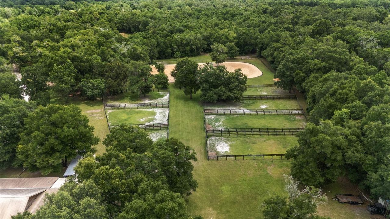 ncome-producing 30+ acre equestrian compound with (3) RV hookups, fiber optic high-speed WiFi, and professional training infrastructure, ideally located just minutes from (WEC) World Equestrian Center and HITS. Tucked at the end of a semi-private gated road and surrounded by large acreage farms and mature trees, this quiet and secluded property offers privacy without sacrificing convenience - and features no mandatory HOA dues. Welcome clients down a shaded, tree-lined drive to a fully fenced an...ncome-producing 30+ acre equestrian compound with (3) RV hookups, fiber optic high-speed WiFi, and professional training infrastructure, ideally located just minutes from (WEC) World Equestrian Center and HITS. Tucked at the end of a semi-private gated road and surrounded by large acreage farms and mature trees, this quiet and secluded property offers privacy without sacrificing convenience - and features no mandatory HOA dues. Welcome clients down a shaded, tree-lined drive to a fully fenced and gated farm designed for serious horsemen and profitable operations.The center-aisle show barn offers 21 stalls, three oversized grooming stalls, a wash rack, dedicated feed and tack rooms, and an attached 1,200-square-foot two-bedroom, one-bath apartment ideal for a live-in manager, trainer, or seasonal residence. Anchoring the equestrian amenities is an irrigated 180 x 220 arena with premium GGT footing for dependable year-round training, suitable for dressage, hunters, jumpers, or young prospects. Nineteen irrigated paddocks with ample shade are enclosed by three-board and top-board-with-wire fencing, and a perimeter bridle path provides space for conditioning and relaxed hacking beneath the oaks.The property offers multiple income streams, including stall rentals, boarding, breeding, and training opportunities, along with two charming 540-square-foot cabins ideal for Airbnb, client housing, clinic accommodations, or staff quarters. Three RV hookups with water and electric provide additional flexibility for winter circuit riders, show clients, or seasonal guests. Multiple additional homesites allow for future expansion or a custom main residence.Conveniently located approximately 20 minutes from Gainesville's full amenities, including world-class UF Health care, the farm also provides easy access to feed stores, equine veterinarians, Black Prong Equestrian Village, Goethe State Forest trail systems, and Bailey Mine Trailhead. This is a rare opportunity to own a revenue-ready equestrian estate combining privacy, infrastructure, connectivity, and location in one turnkey North Central Florida offering.