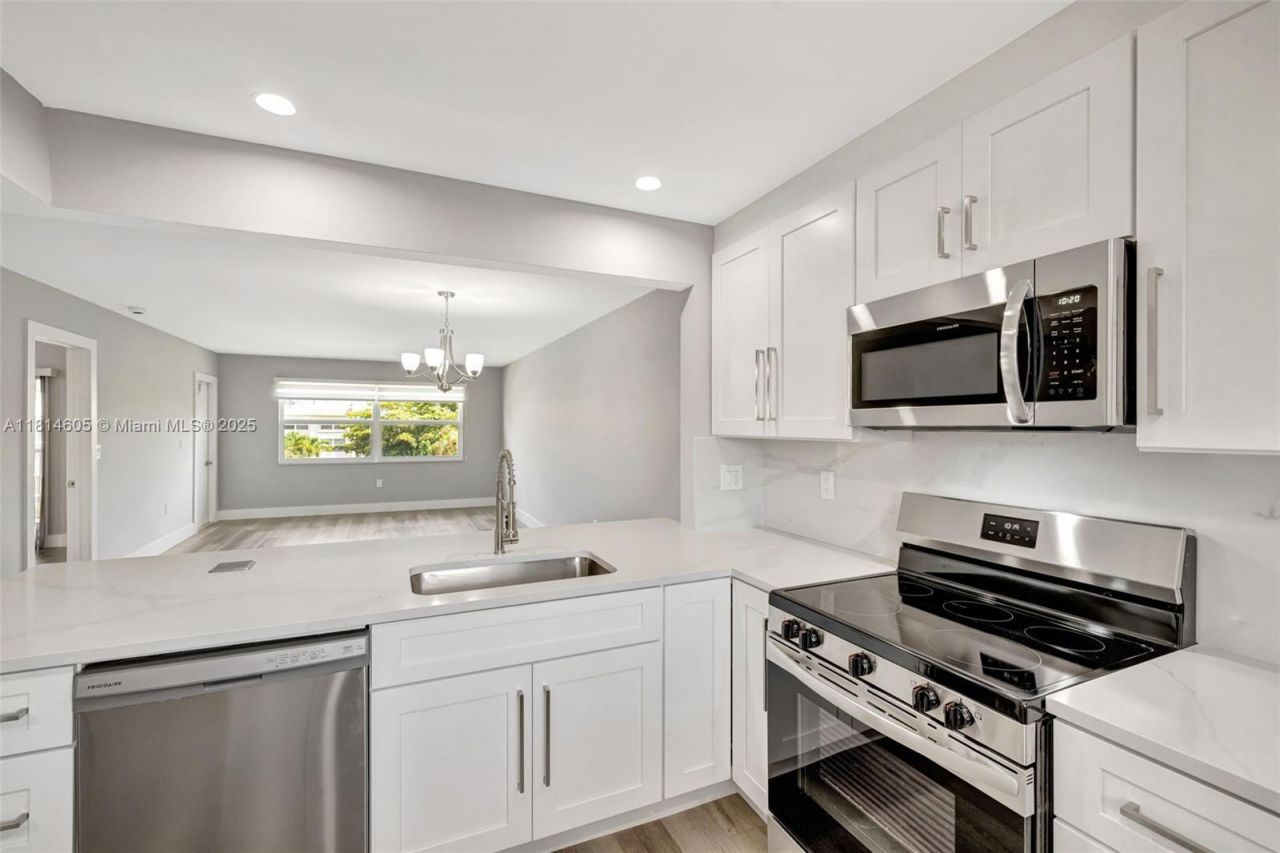 Wow! Stunning! Absolutely everything is NEW & BEAUTIFUL!!! GORGEOUS unit with 2 bedrooms & 2 bathrooms, completely remodeled (with all permits). Features include new AC, new water heater, new impact windows throughout, & a new opened kitchen. White cabinets, quartz countertops, recessed lights & new Stainless appliances. Waterproof & sunproof Vinyl wood like floor throughout the entire unit & Porcelaine tile floor on the balcony. Both bathrooms are also new & modern. All ceilings are popcorn fre...Wow! Stunning! Absolutely everything is NEW & BEAUTIFUL!!! GORGEOUS unit with 2 bedrooms & 2 bathrooms, completely remodeled (with all permits). Features include new AC, new water heater, new impact windows throughout, & a new opened kitchen. White cabinets, quartz countertops, recessed lights & new Stainless appliances. Waterproof & sunproof Vinyl wood like floor throughout the entire unit & Porcelaine tile floor on the balcony. Both bathrooms are also new & modern. All ceilings are popcorn free, flat, & new electric panel. Enjoy your large balcony with views of the pool. On the 3rd floor, nobody on top of you, far from the street. HOPA verified community with clubhouse, pool, gym, bocce ball, tennis & pickleball courts, and a picnic& BBQ area. Comes with one parking & one storage.