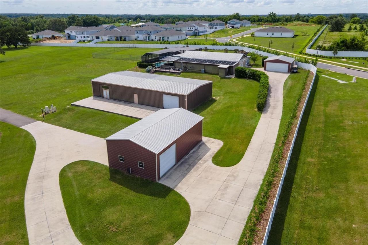 One-of-a-Kind Barndominium Estate on 5.6 Acres. Discover one of Lake County's most unique properties, offering unmatched versatility and privacy on 5.6 fully fenced acres with 2 entry gates, main gate is solar powered. This exceptional estate features two barndominiums, multiple metal buildings, a pool, and a wealth of outdoor living spaces. The main barndominium provides 1,957 sq ft of stylish living space with 2 bedrooms, a spacious walk-in closet, an open kitchen and living area, and a large ...One-of-a-Kind Barndominium Estate on 5.6 Acres. Discover one of Lake County's most unique properties, offering unmatched versatility and privacy on 5.6 fully fenced acres with 2 entry gates, main gate is solar powered. This exceptional estate features two barndominiums, multiple metal buildings, a pool, and a wealth of outdoor living spaces. The main barndominium provides 1,957 sq ft of stylish living space with 2 bedrooms, a spacious walk-in closet, an open kitchen and living area, and a large full bath with a beautifully tiled walk-in shower. Attached is a 1,243 sq ft storage/workshop with an overhead door and an expansive 80' x 20' concrete patio perfect for entertaining or hobbies. The second barndominium offers over 2,800 sq ft of open living space, complete with a full kitchen, bar area with kegerator, stainless steel BBQ station, outdoor shower, and half bath. Inside, enjoy 900 sq ft of heated and cooled space that includes a private bedroom with walk-in closet, a full tiled bath with walk-in shower, and a living room with laundry closet. Step outside to a 50' x 28' screened-in solar heated pool with a 20' x 16' pool house, featuring a mini-split system, built-in bar, and kegerator ideal for year-round entertaining. Additional highlights include a 23' x 24' concrete firepit, a 30' x 10' wood deck patio, a 24' x 24' detached two-car garage, and a 40' x 24' metal building with overhead door for even more storage or workspace. 650 amp service all on one meter and 500 gallon propane tank. This property offers endless possibilities expand the main residence, create a family compound, or enjoy it as a private retreat. All of this is centrally located in Central Florida, with easy access to Leesburg (The Lakefront City), Tavares (The Seaplane City), and the Florida Turnpike.
