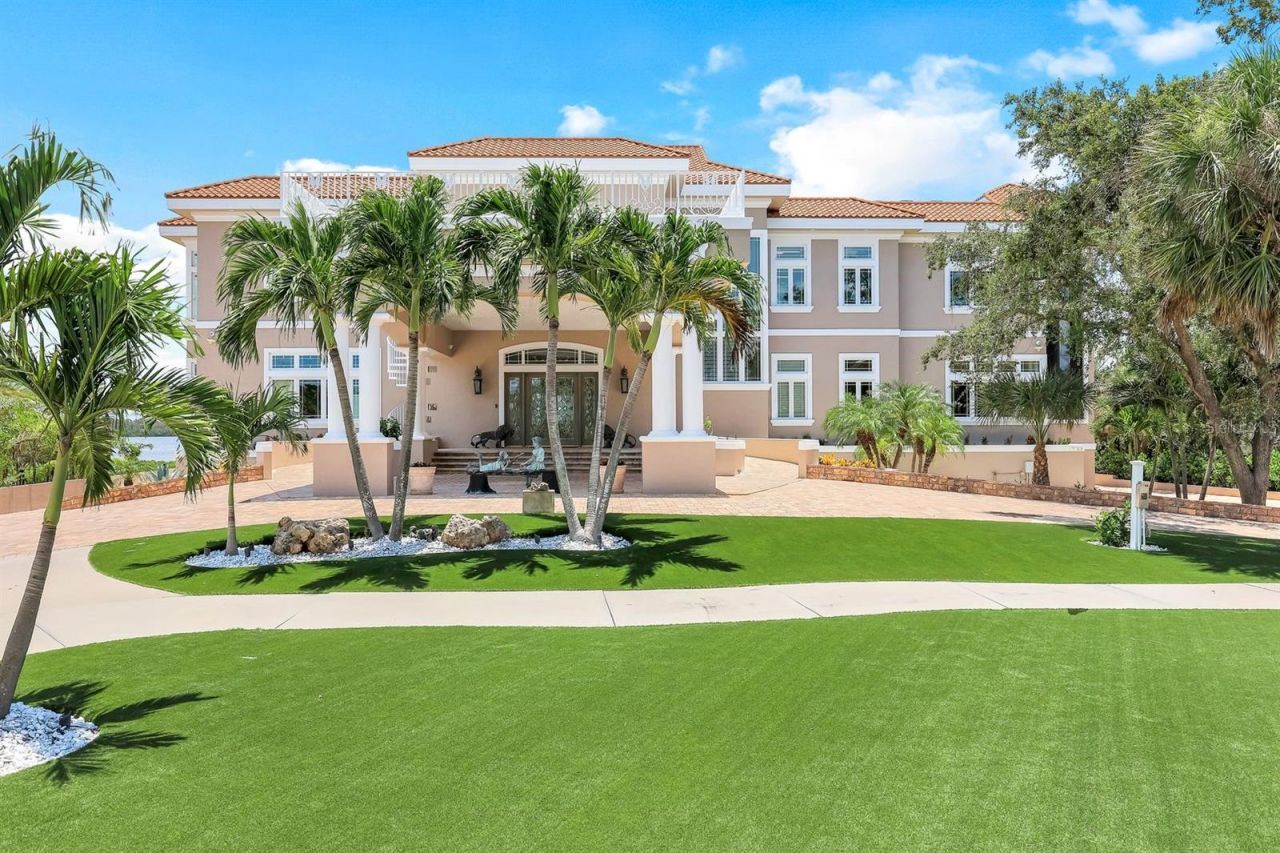 There are homes you can understand online, and then there are homes you must walk through to truly feel. This is one of them.Set on nearly 3 private acres along Lemon Bay, this gated Mediterranean-inspired estate spans 12,789 sq. ft. of resort-style living with unmatched amenities on Florida's Gulf Coast, all within this private estate. Enter through grand gates and follow a sweeping driveway framed by mature oaks, tranquil ponds, waterfalls, and curated sculptures. The grounds include manicured...There are homes you can understand online, and then there are homes you must walk through to truly feel. This is one of them.Set on nearly 3 private acres along Lemon Bay, this gated Mediterranean-inspired estate spans 12,789 sq. ft. of resort-style living with unmatched amenities on Florida's Gulf Coast, all within this private estate. Enter through grand gates and follow a sweeping driveway framed by mature oaks, tranquil ponds, waterfalls, and curated sculptures. The grounds include manicured lawns, a putting green, bocce and volleyball courts, and expansive outdoor recreation. A dramatic porte coch?re introduces a soaring two-story foyer with double glass doors, stained-glass transoms, and a glass elevator. Interiors showcase coffered and tray ceilings, stately columns, marble and travertine floors, extensive millwork, and eight fireplaces. The home offers six ensuite bedrooms, 9.5 total baths (primary bath has 3 bathroom sections but counted as 1 in the total), a library with wet bar, a media/family room with projector, fitness and meditation rooms, and rooftop terraces designed for sunset and Gulf views. The chef's kitchen features dual islands, Sub-Zero and Wolf appliances, wine fridge, ice maker, and walk-in pantry, flowing seamlessly into both formal and casual dining areas. The primary suite includes bay views from a private screened terrace, fireplace, sitting area, spa-like bath, and custom closets, while guest suites offer private balconies, walk-in closets, and baths. Outdoor living is highlighted by a 30??50 resurfaced saltwater pool and spa, full outdoor kitchen, shaded terraces, pool bath, and recreation courts. The property extends to a private dock with boat lift and deeded Gulf beach access. A tiled garage provides capacity for up to 30 vehicles, complete with 10 mini-split A/C systems and extensive storage, ideal for collectors or large-scale entertaining.