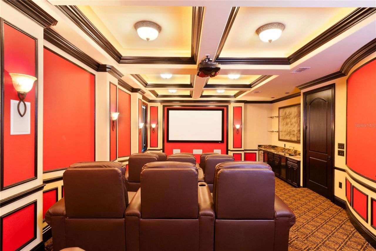 Welcome to 7825 Palmilla Court, a stunning 8-bedroom, 11-bathroom luxury residence offering over 8,000 square feet of living space in Reunion Resort. Designed with elegance and entertainment in mind, this home comfortably sleeps up to 18 guests and delivers a resort experience unlike any other.From the moment you enter the grand hallway, the scale of the home is apparent. Multiple living areas flow seamlessly into the formal dining room and a chef's kitchen outfitted with top-of-the-line applian...Welcome to 7825 Palmilla Court, a stunning 8-bedroom, 11-bathroom luxury residence offering over 8,000 square feet of living space in Reunion Resort. Designed with elegance and entertainment in mind, this home comfortably sleeps up to 18 guests and delivers a resort experience unlike any other.From the moment you enter the grand hallway, the scale of the home is apparent. Multiple living areas flow seamlessly into the formal dining room and a chef's kitchen outfitted with top-of-the-line appliances, a breakfast bar, and generous gathering space. Floor-to-ceiling detail continues with luxury furnishings and multiple balconies that frame panoramic golf course views.Each of the 8 bedrooms is a private suite, complete with en-suite bathrooms, walk-in closets, and HDTVs. Among them are two grand master suites, one with its own private lounge, balcony access, and spa-inspired bath with a soaking tub and walk-in shower. Six additional suites, including two with dual double beds, ensure ample accommodations for large families or groups.This residence was built for fun and relaxation. Entertainment options include a 12-seat private cinema with surround sound and wet bar, a games room with pool and poker tables, custom chess table, and HDTV, and a family lounge featuring foosball, gaming consoles, and Bose surround sound. Fitness enthusiasts will enjoy the private gym with cardio and strength equipment, while evenings can be spent gathered in one of the many lounges or outdoor living spaces.Outside, the home transforms into a true resort. A custom-designed pool with spa and water slide anchors the expansive patio, complete with an outdoor kitchen, grill, and covered dining areas. Luxury poolside furniture, a pool bar, and outdoor HDTV create the perfect setting to enjoy Florida days and nights, all overlooking the Jack Nicklaus Signature Golf Course. Automated insect screens on balconies and lanais provide additional comfort while taking in the views.Located just minutes from Walt Disney World, this property combines convenience with world-class amenities. Reunion Resort offers three championship golf courses, a water park with lazy river, multiple pools, tennis and pickleball courts, a full-service spa, and upscale dining. Whether as a primary residence, a second home, or a high-performing vacation rental, 7825 Palmilla Court delivers luxury, lifestyle, and investment opportunity in one extraordinary package.