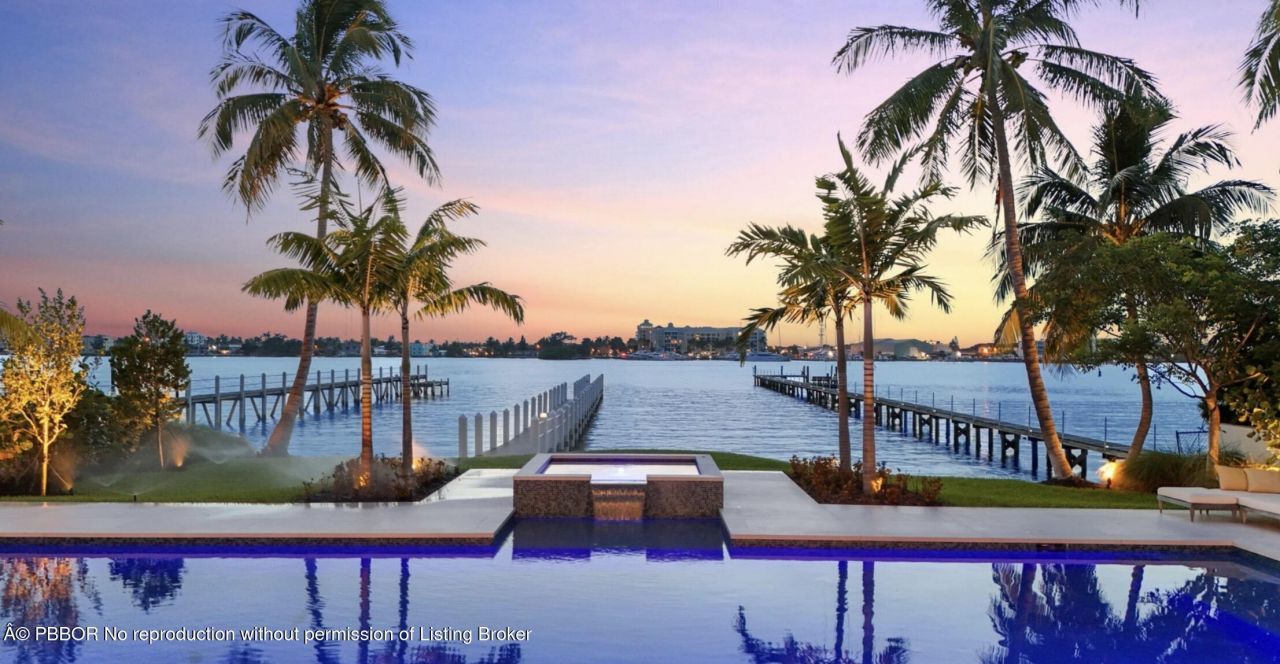 Experience refined, effortless living in this gorgeous waterfront estate nestled in the private enclave of Hypoluxo Island. Wide Intracoastal views greet you upon entry, framed by soaring ceilings, an open-floor plan and exquisite finishes throughout. With over 5,000+ sq ft under air, this home features 5 bedrooms, 5.2 baths, a gracious living room, chefs kitchen with Wolf appliances, an oversized island opening to the dining & family rooms with a large built-in bar and separate office. The luxu...Experience refined, effortless living in this gorgeous waterfront estate nestled in the private enclave of Hypoluxo Island. Wide Intracoastal views greet you upon entry, framed by soaring ceilings, an open-floor plan and exquisite finishes throughout. With over 5,000+ sq ft under air, this home features 5 bedrooms, 5.2 baths, a gracious living room, chefs kitchen with Wolf appliances, an oversized island opening to the dining & family rooms with a large built-in bar and separate office. The luxurious primary suite impresses with dual dressing areas, spa-level baths & its own waterfront terrace. Outdoors, enjoy a sunset facing pool & spa, covered loggia & private dock. Complete with an elevator, full-house generator, and a 3-car garage. This is a rare opportunity and a boaters dream!