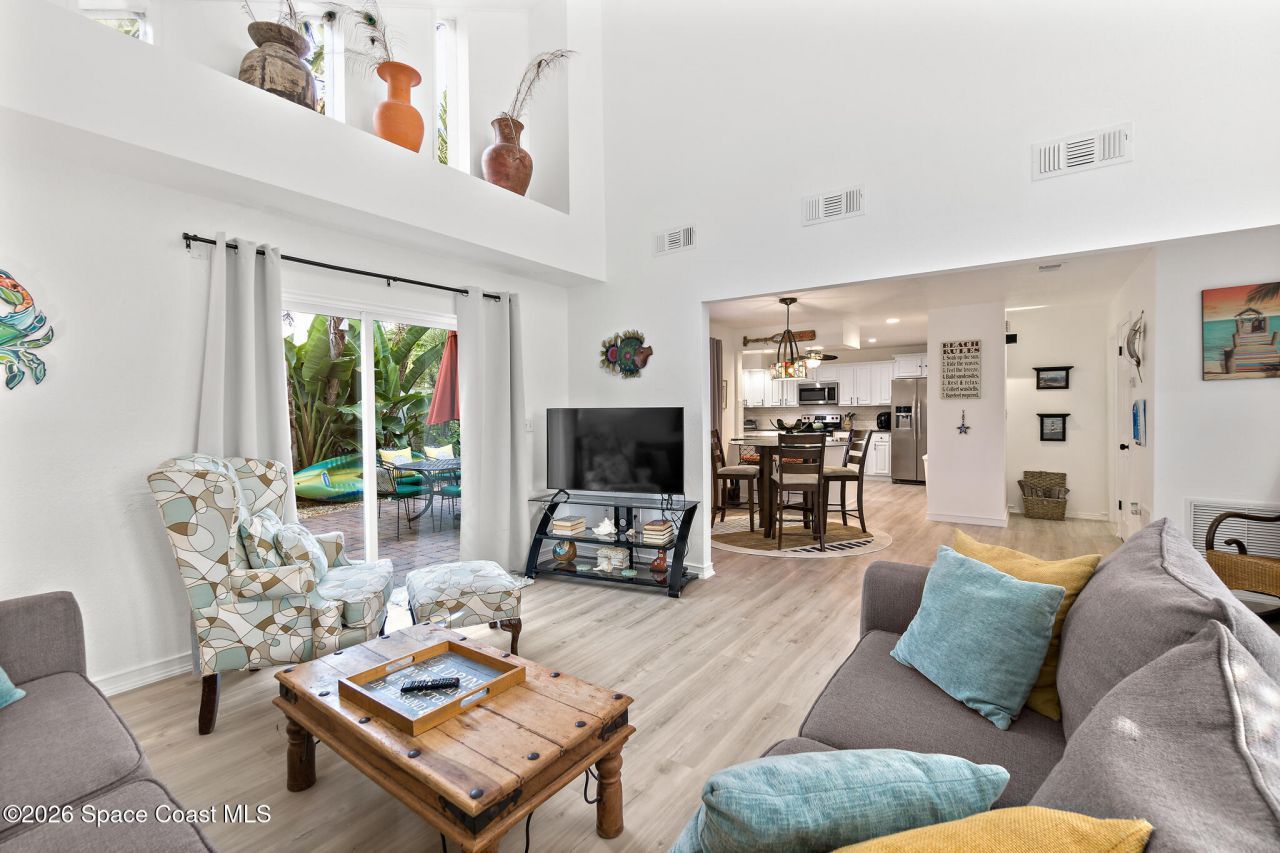 4/4.5 pool home across from the beach in Cape Canaveral. Short term rentals allowed, no HOA, heated pool, furnished, and garage.This two story home offers 2,057 square feet with flexible use for primary living, vacation ownership, or rental income. The main level features vaulted ceilings, an open living and dining area, and a kitchen with granite countertops, stainless steel appliances, and breakfast bar seating. Two first floor bedroom suites provide excellent flexibility, including one with p...4/4.5 pool home across from the beach in Cape Canaveral. Short term rentals allowed, no HOA, heated pool, furnished, and garage.This two story home offers 2,057 square feet with flexible use for primary living, vacation ownership, or rental income. The main level features vaulted ceilings, an open living and dining area, and a kitchen with granite countertops, stainless steel appliances, and breakfast bar seating. Two first floor bedroom suites provide excellent flexibility, including one with private patio access, plus a convenient half bath near the entry.Upstairs, the primary suite offers separation and privacy with a walk in closet, dual sink bath, and tub with separate shower. A fourth bedroom and additional full bath complete the second level. Outdoor living centers around a heated in ground pool, privacy fenced paver patio, outdoor bar and grilling area, and wraparound outdoor space. A second floor balcony and rooftop deck offer ocean views.