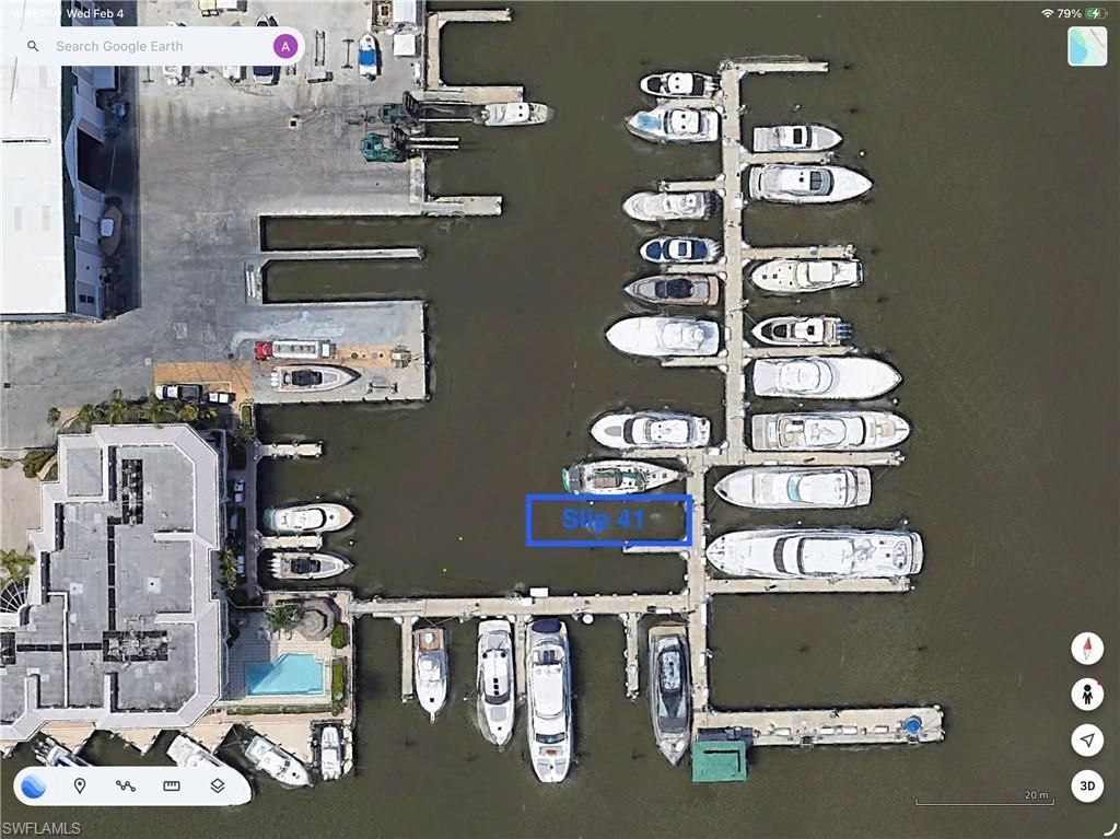 Located in Old Naples, west of Naples Bay, Naples Boat Club is the premier destination for yachting in Naples. This slip is in the floating dock section of the marina, measures 55’ by 19’, but may be administratively extended with Buyer paying a fee to the Association (contact listing agent for details). Slip 41 is located in the marina basin, features two 50-amp shore power outlets and an adjacent 32’ finger pier for easy loading and boarding. Naples Boat Club features amp...Located in Old Naples, west of Naples Bay, Naples Boat Club is the premier destination for yachting in Naples. This slip is in the floating dock section of the marina, measures 55’ by 19’, but may be administratively extended with Buyer paying a fee to the Association (contact listing agent for details). Slip 41 is located in the marina basin, features two 50-amp shore power outlets and an adjacent 32’ finger pier for easy loading and boarding. Naples Boat Club features ample convenient parking, bay-side clubhouse with pool and chickee hut, on-site fuel & pump-out, fish cleaning station, full-time dockmaster staff and professional management. NBC is also home to the highly regarded Syren Oyster & Cocktail Bar!