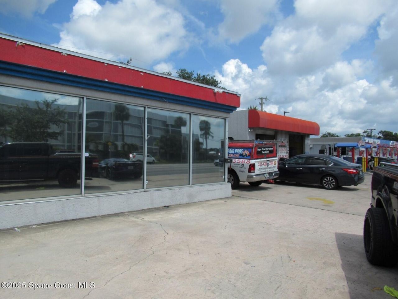 Excellent high traffic location for automotive related retail operation with 9 bays, business office, and large glass corner showroom. Prime corner location with heavy traffic count of 45,000+ cars per day. Glassed showroom is 1272SF with overhead rollups on all bay doors. Zoning CC2. .
