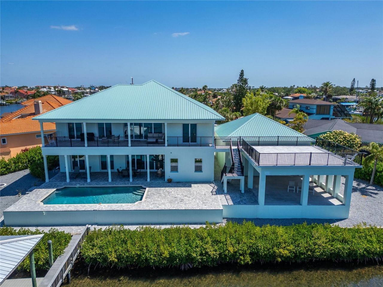 935 Chipaway Drive in Apollo Beach is a true one-of-a-kind waterfront gem. This 2023 custom-built home sits at the very end of a quiet cul-de-sac with 133 feet of shoreline and incredible direct views of Tampa Bay and the St. Pete skyline. It faces west, giving you the best sunset views around. The location is unbeatable and very rare, sitting at the widest part of any canal in Apollo Beach with open water right out your back door. Manatees, dolphins, and stingrays are regular visitors.The home ...935 Chipaway Drive in Apollo Beach is a true one-of-a-kind waterfront gem. This 2023 custom-built home sits at the very end of a quiet cul-de-sac with 133 feet of shoreline and incredible direct views of Tampa Bay and the St. Pete skyline. It faces west, giving you the best sunset views around. The location is unbeatable and very rare, sitting at the widest part of any canal in Apollo Beach with open water right out your back door. Manatees, dolphins, and stingrays are regular visitors.The home offers 4,704 square feet of living space, plus an additional 934 square feet of heated and cooled garage space, all under one roof. As you step through the double front doors, you are greeted with wide-open water views of the canal and Tampa Bay beyond from almost every room. There is no carpet anywhere - just strong, durable luxury vinyl plank floors. The main living area is bright and open, with a spacious kitchen featuring upgraded appliances, pull-out drawers, lots of storage, and a large waterfall quartz island with seating for four.The layout includes three bedrooms on the main living floor, each with its own private bath, plus a full office that could easily become a fourth bedroom. The primary bedroom has water views, a walk-in closet with built-in storage, dual sinks, and a glass walk-in shower. Downstairs, there is another bedroom with a full bath, perfect for an in-law suite or extra living space. The first level is a blank canvas ready for your creativity - tall ceilings, a private entrance, and about 2,800 additional square feet of potential. Build out another living unit, add a game room, media room, gym, or more bedrooms - the options are endless. This space also offers breathtaking views of the deep, wide canal and the mangroves across the water.The heated and cooled garages are oversized with tall ceilings and epoxy floors, easily fitting up to six vehicles, boats, RVs, or work trucks. Outside, you'll find two huge covered outdoor areas next to the fully renovated saltwater pool - the perfect spot for a future outdoor kitchen or Florida room. Two oversized balconies, one covered and one open, give you even more space to relax and enjoy the sunsets and water views.The brand-new dock, built in 2023, includes a 16,000-pound lift, a floating dock, and open dock space for a yacht or sailboat. The home is built strong with, a metal roof, hurricane-rated windows and doors, and sits at a high elevation with no storm damage from recent hurricanes.There's no HOA or CDD, and short-term rentals are allowed, making this a perfect full-time home, second home, or investment opportunity.