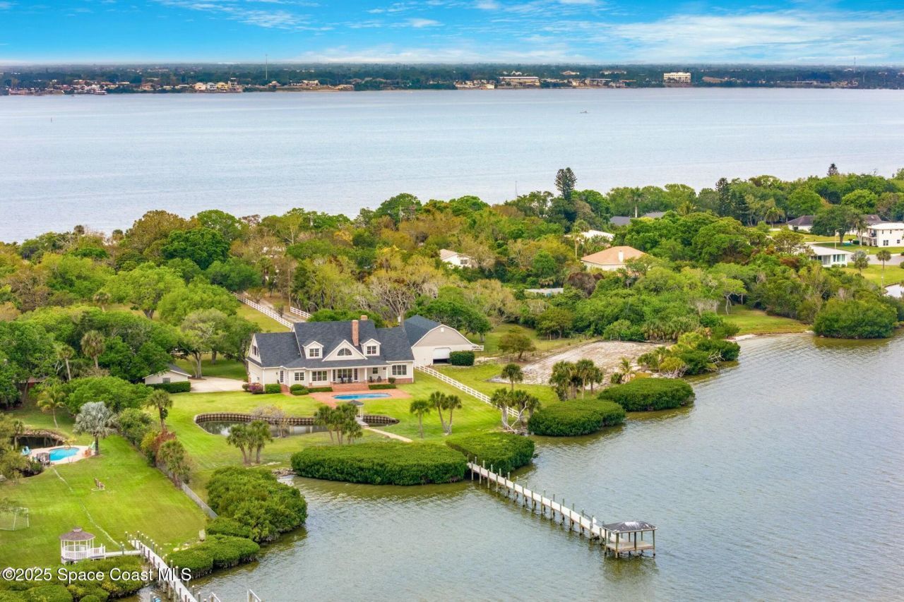 A rare River-to-River estate on nearly 6.2 acres along prestigious S. Tropical Trail offers unparalleled privacy, grandeur, and breathtaking waterfront views. A majestic oak-lined drive leads to this stately residence, featuring 540+ft of Banana River frontage to the east and 200+- ft on the Indian River to the west?both with docks, ensuring stunning sunrises and sunsets. The elegant interior boasts gleaming wood floors, soaring cathedral ceilings, and walls of windows framing serene water views...A rare River-to-River estate on nearly 6.2 acres along prestigious S. Tropical Trail offers unparalleled privacy, grandeur, and breathtaking waterfront views. A majestic oak-lined drive leads to this stately residence, featuring 540+ft of Banana River frontage to the east and 200+- ft on the Indian River to the west?both with docks, ensuring stunning sunrises and sunsets. The elegant interior boasts gleaming wood floors, soaring cathedral ceilings, and walls of windows framing serene water views. A river-facing kitchen, spacious living areas, and a luxurious primary suite create an inviting yet refined ambiance. Upstairs, three bedrooms, a Jack & Jill bath, an on-suite, and a versatile bonus room offer ample space. With a new roof (2021) and fresh exterior paint, this estate is a once-in-a-lifetime opportunity to own a rare dual-river property. Experience timeless elegance, unmatched tranquility, and endless possibilities. Mature oaks drape gracefully over the private entrance, setting the tone for the gracious Southern estate living that awaits beyond. The homes classic yet timeless faƧade exudes elegance, while expansive river frontage offers an exclusive retreat. Sunlit interiors blend warmth and sophistication, featuring cathedral ceilings, gleaming wood floors, and walls of windows that bathe the home in natural light. The primary suite boasts sweeping water vistas, a spa-like bath, and a private sanctuary to enjoy morning coffee. A versatile office/library/nursery and a second office provide flexible space for work or relaxation. Upstairs, three well-appointed bedrooms offer privacy, with a dormer ed bonus room ideal for a second family room, media center, or music space. An additional study/computer area expands possibilities for work or hobbies.This legacy estate, one of the last remaining dual-river properties, offers an unrivaled combination of tranquility, prestige, and endless potential