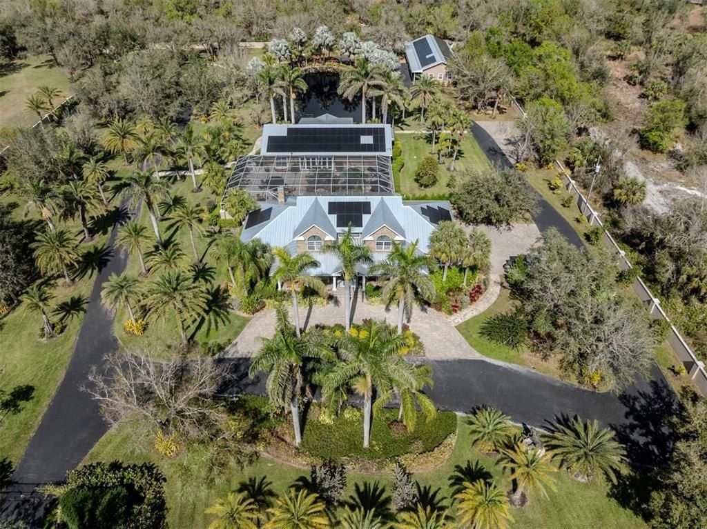 Welcome to an exclusive, gated luxury retreat, a one-of-a-kind three-home compound on five acres of manicured grounds, offering unmatched privacy, security and resort-style living. Step beyond the concrete perimeter wall and double-gated entrance into a world of elegance. Lush landscaping, a serene pond with a waterfall and a grand circular driveway set the tone for this exceptional estate. Whether you're entertaining guests, enjoying multigenerational living or seeking an investment opportunity...Welcome to an exclusive, gated luxury retreat, a one-of-a-kind three-home compound on five acres of manicured grounds, offering unmatched privacy, security and resort-style living. Step beyond the concrete perimeter wall and double-gated entrance into a world of elegance. Lush landscaping, a serene pond with a waterfall and a grand circular driveway set the tone for this exceptional estate. Whether you're entertaining guests, enjoying multigenerational living or seeking an investment opportunity, this property is designed to impress. Each home features its own entrance and front patio. The main residence is a sophisticated sanctuary with five bedrooms and 4.5 baths. Enter through a two-story foyer featuring a stunning crystal chandelier and a sweeping wood staircase leading to three spacious bedrooms upstairs. In the north wing of the main level, the luxurious primary suite offers its fireplace and a spa-like bath for ultimate comfort. On the opposite side of the home, there is a guest suite and a laundry room. The gourmet kitchen, equipped with granite countertops, a center island and top-tier stainless-steel appliances, leads into a separate dining room. The grand living room, complete with a fireplace, seamlessly connects to the resort-style outdoor living space. The covered lanai, with a fully equipped outdoor kitchen and a cozy fireplace, is designed for relaxation and entertainment. At the heart of the outdoor oasis is a custom pool with a stunning waterfall, surrounded by lush mature landscaping and enhanced by accent lighting to create a breathtaking ambiance. A vast 75-by-58-foot paver patio connects the main house to the pool house. The pool house is the ultimate entertainment space, designed for hosting and relaxation. It features a fully equipped bar and lounge, making it ideal for gatherings. An expansive entertainment area and a bedroom/media room provide ample space for leisure. The extra-large primary suite includes a private lounge area and two spacious walk-in closets with laundry facilities, offering comfort and convenience. At the rear of the property is a well-appointed guest home with an attached event hall featuring a comfortable one-bedroom, one-bath layout including a full kitchen, living room and laundry facilities. An extra-large three-car-plus garage with a workshop provides ample storage and workspace, and additionally, a bonus air-conditioned expansive event space. The estate's grounds are filled with thoughtful features, including a charming pergola-covered walking path that leads to seven raised garden beds with an irrigation system, ideal for growing fresh herbs and vegetables. Multiple meditation areas provide serene spaces for reflection. A paver RV parking pad with an electricity hookup and pump-out ensures easy accommodation for recreational vehicles. This estate is a rare find. Easy access to Interstate and Punta Gorda Airport. Schedule your private tour today.