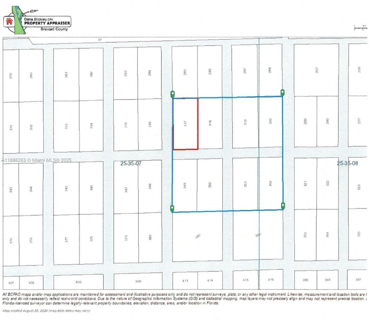 This land is zoned GU with a property use of 0010 - VACANT RESIDENTIAL LAND (SINGLE FAMILY, PLATTED). There is no road access to the land. There are 8 parcels being sold all together. Brevard County Account #s: 2500349, 2500350, 2500351, 2500352, 2500365, 2500366, 2500367, 2500368
